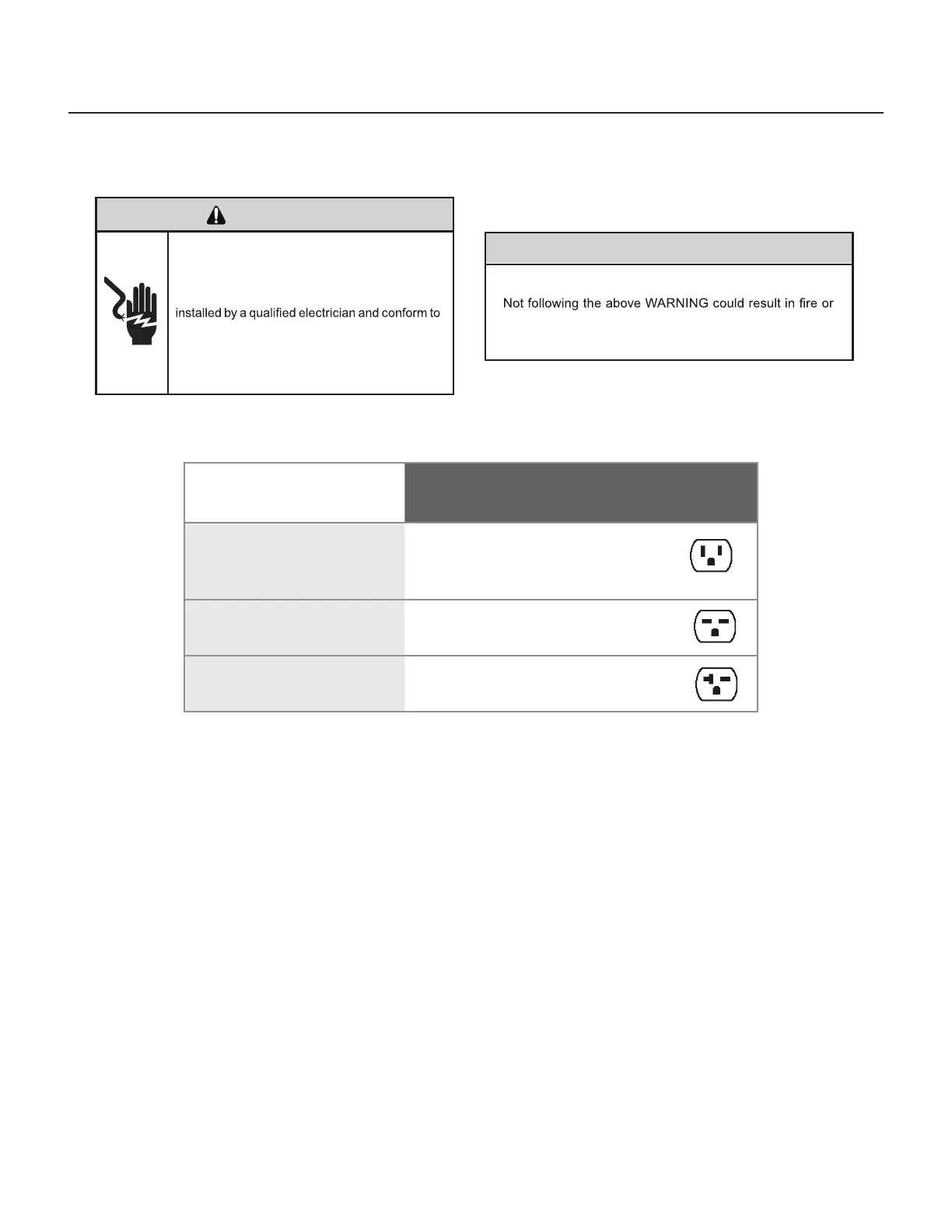 NOT alter the service cord or plug. Do NOT use an extension cord. Refer to the table above for proper receptacle