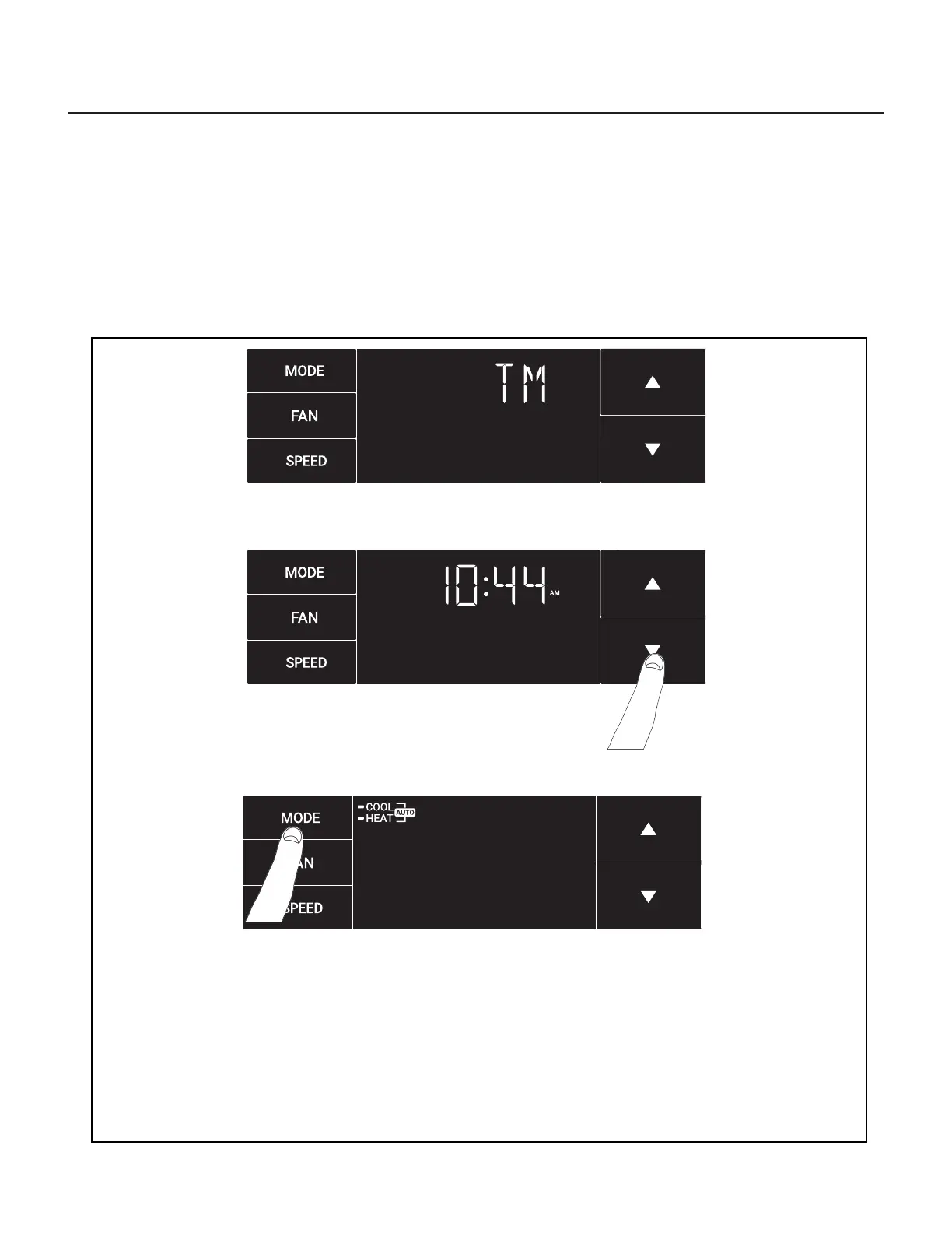 You select your mode. Either cool, heat, or auto. Toggle these using the mode button. See Figure 312. (Note: cooling-only