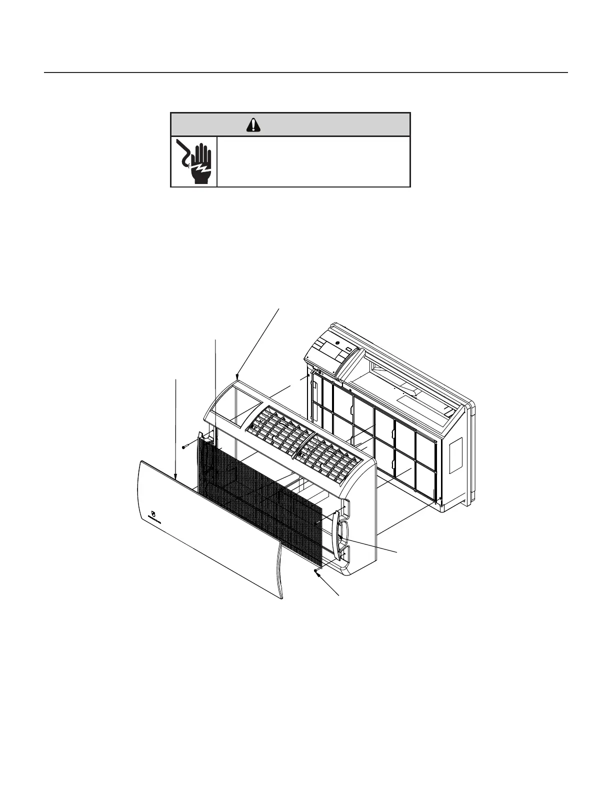 1. Remove the FRONT PANEL. Using the handles, pull panel out until it is released from the two retaining snaps.