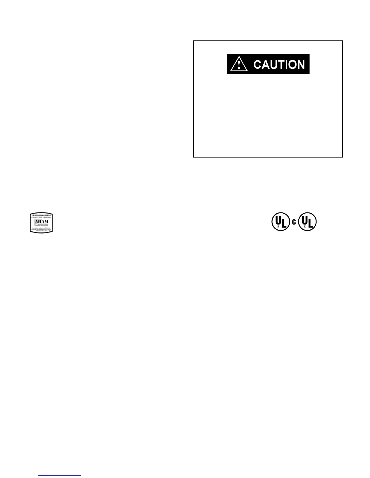 that the AHAM Certifi cation Seal accurately states the unit’s cooling and heating capacity rating,