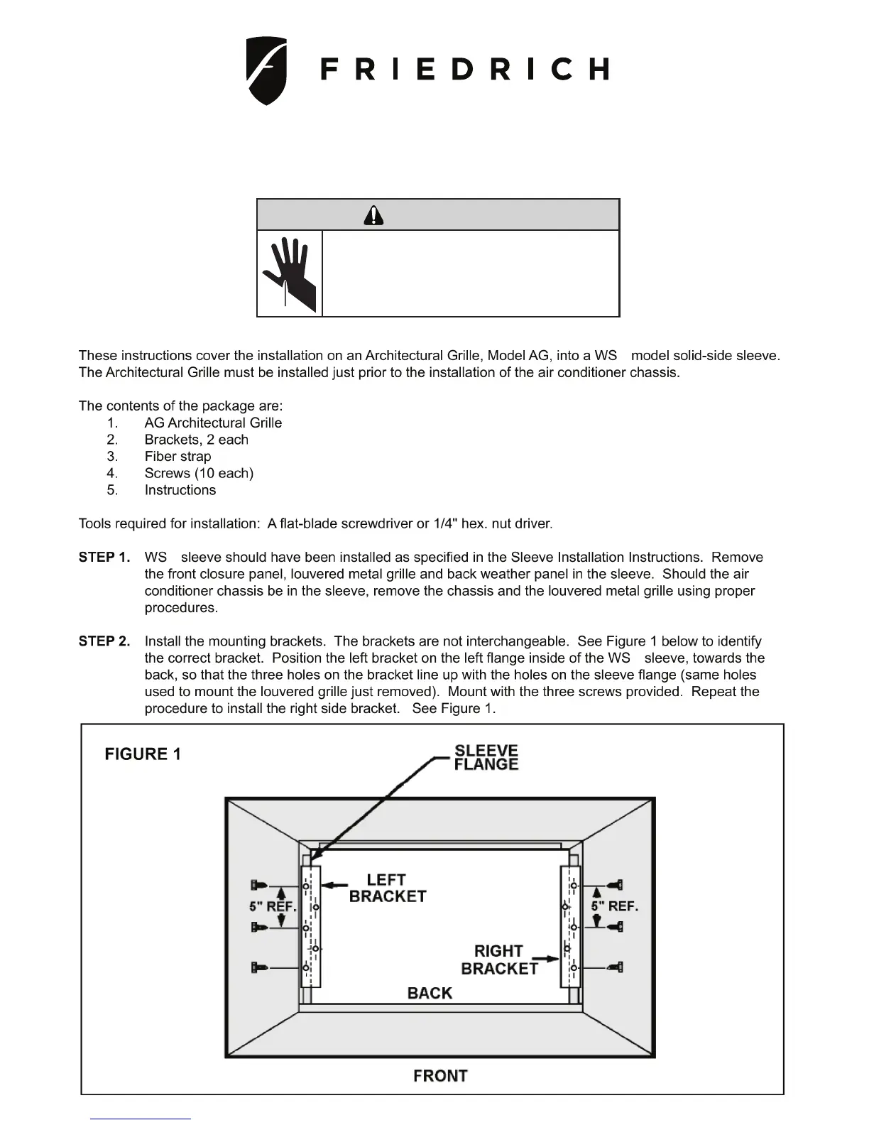Friedrich WallMaster WS08C10A - Architectural Grille Model AG Installation Instructions