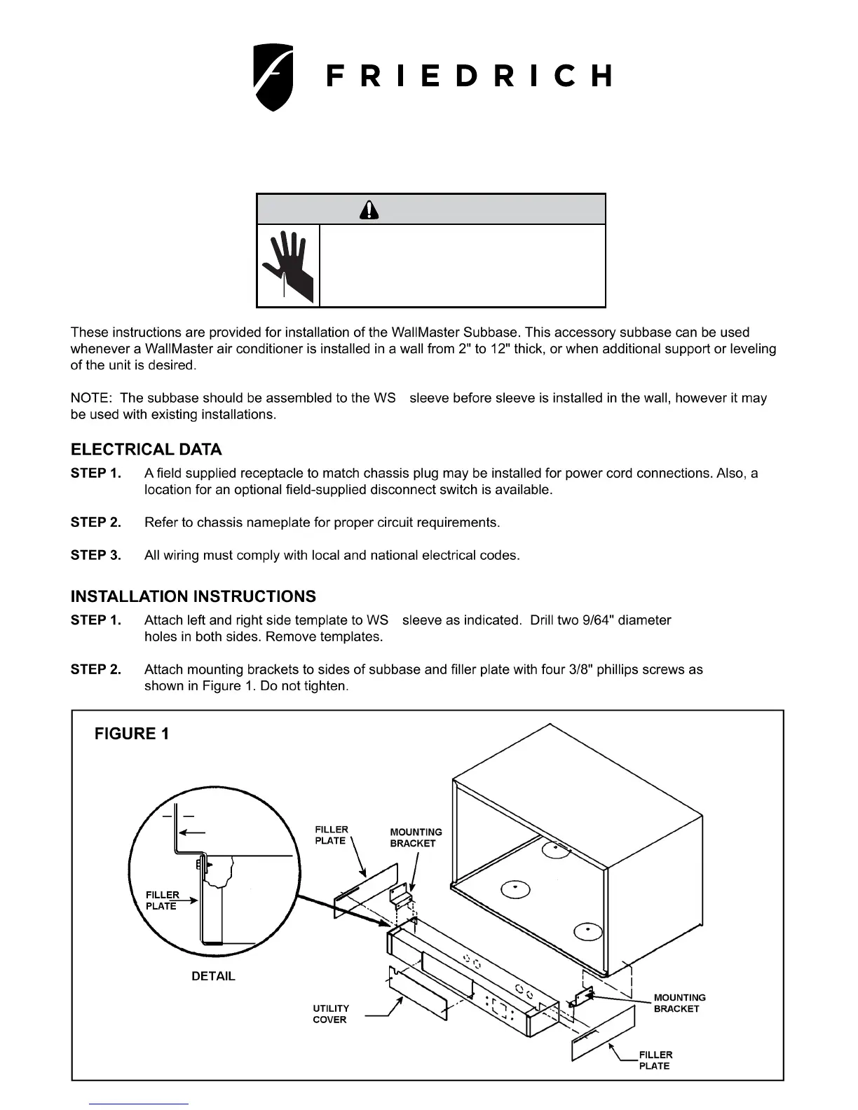 Friedrich WallMaster WS10C10 - Installation Instructions for Sub-Base