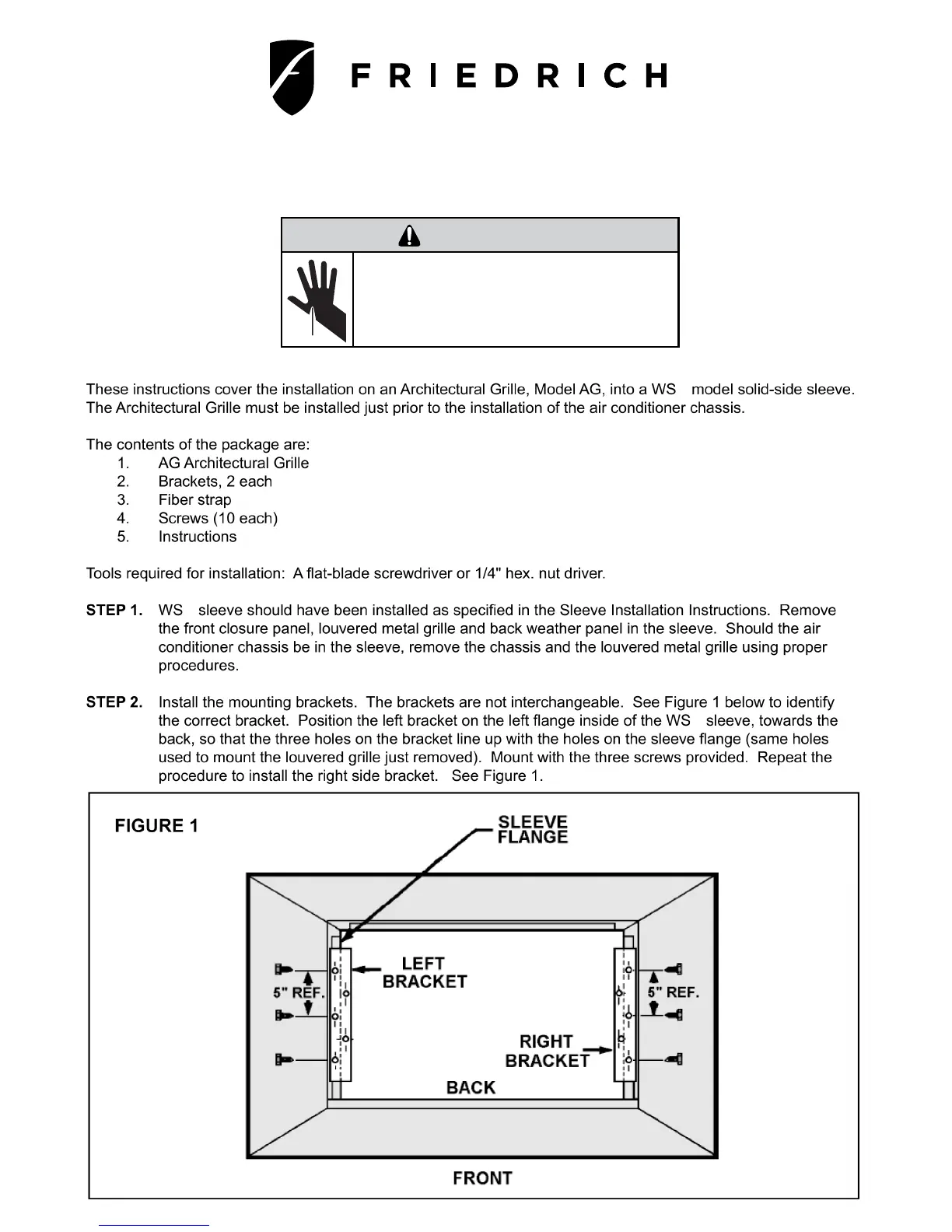 Friedrich WallMaster WS10C10 - Installation Instructions for Architectural Grille Model AG-48-49