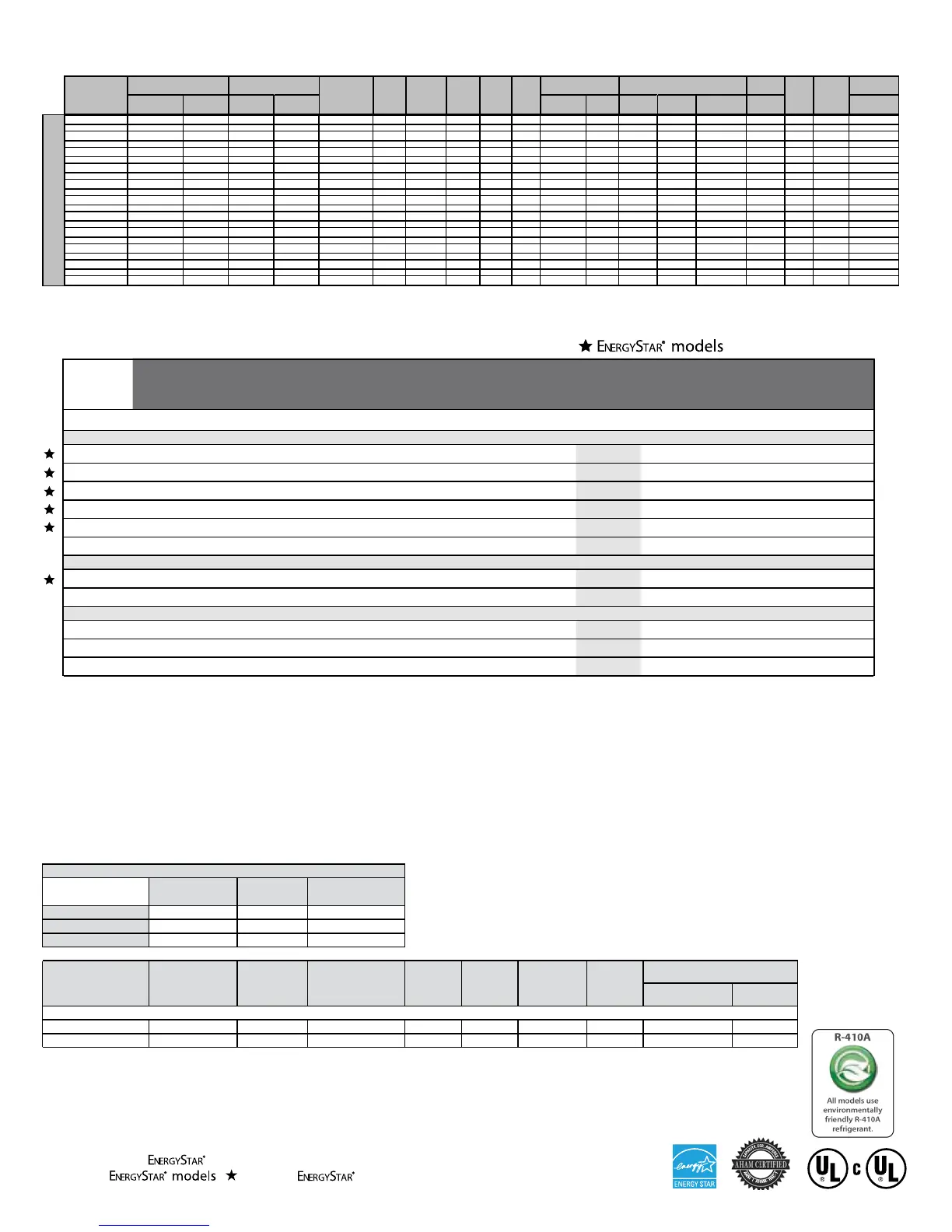 ** Rating Conditions: 80 degrees F, room air temp. & 50% relative humidity, with 95 degree F, outside air temp & 40% relative humidity, all systems use R410A