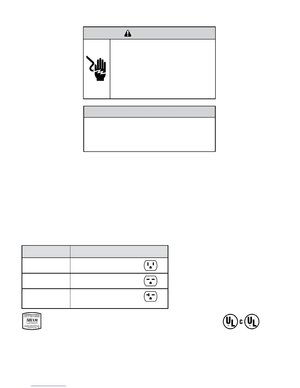 Friedrich WallMaster WS10C10 - ELECTRICAL DATA; Plug;Outlet;Circuit Rating