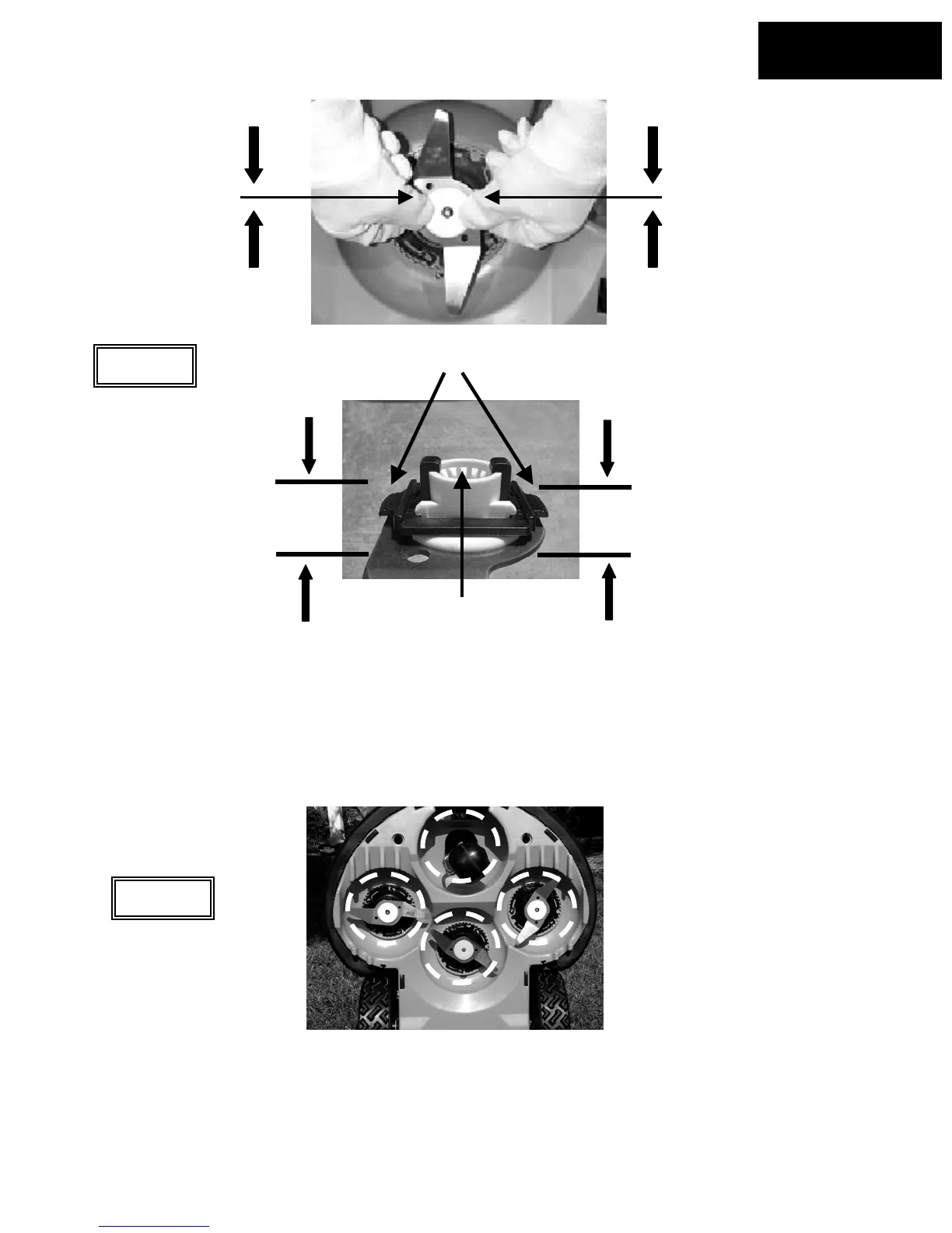 from these areas of the mowing deck. Remove blades if