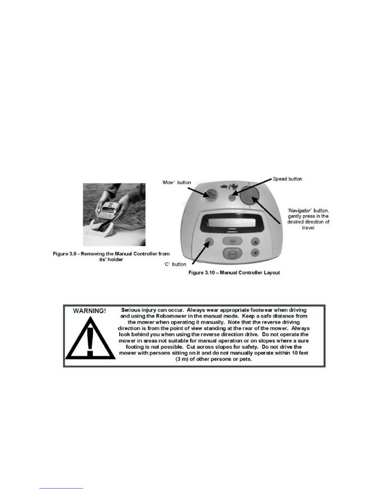 and the driving/navigation button to the right. Once the controller is removed, driving the Robomow