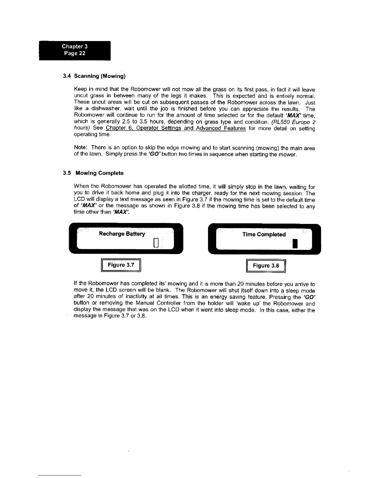 of 'MAX" or the message as shown in Figure 3.8 if the mowing time has been selected to any