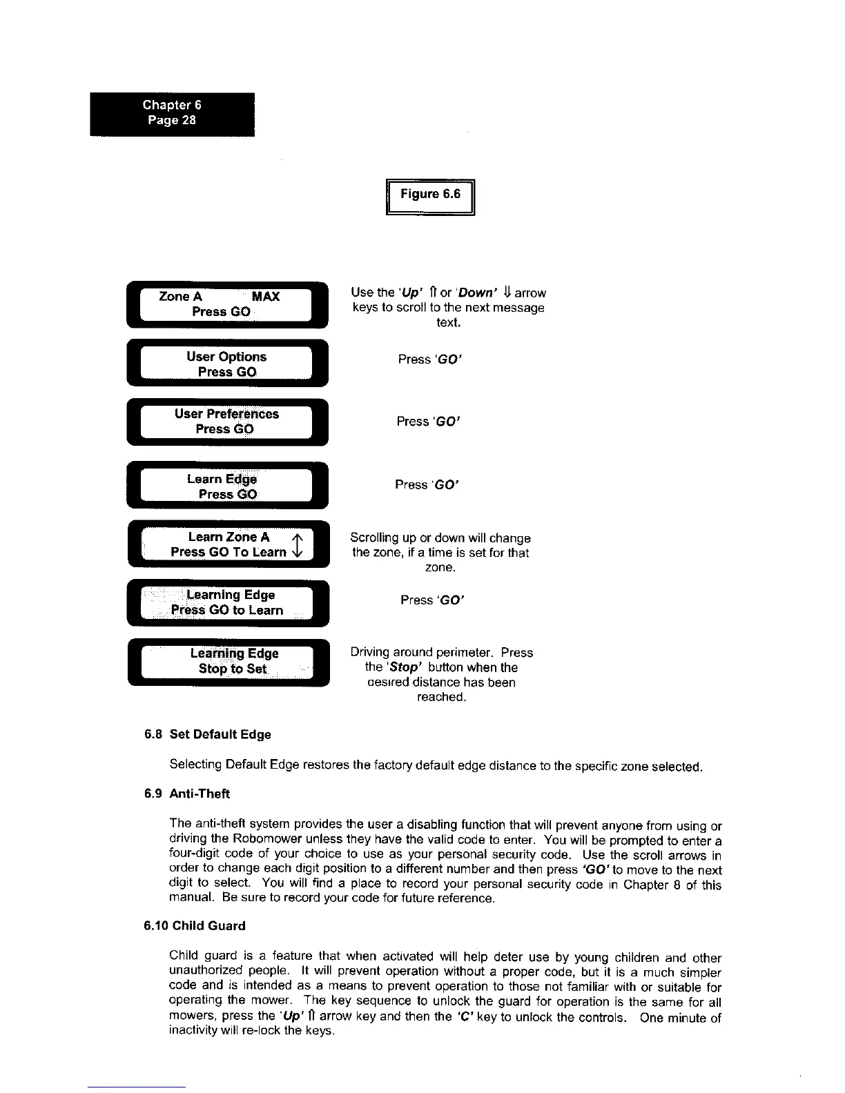 driving the Robomower unless they have the valid code to enter. You will be prompted to enter a