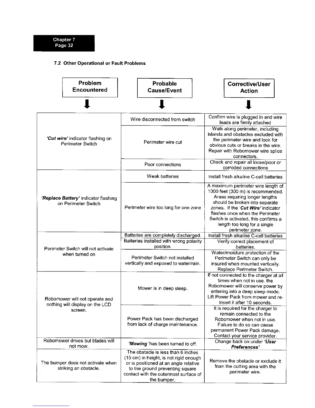 7.2 Other Operational or Fault Problems