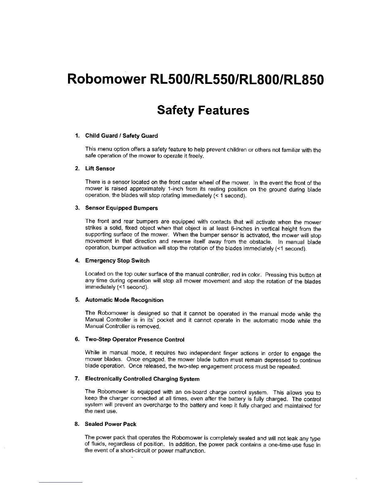 operation, bumper activation will stop the rotation of the blades immediately (<1 second).