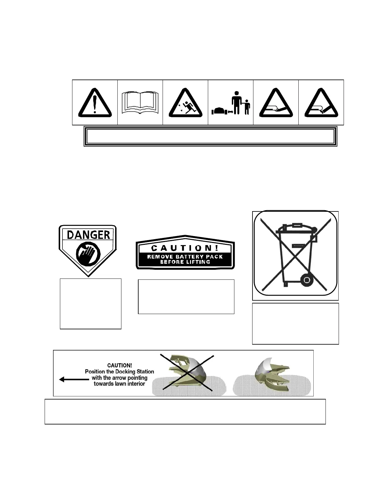 5. Sharp rotating blades. Keep hands away and do not attempt to lift mower from this area.
