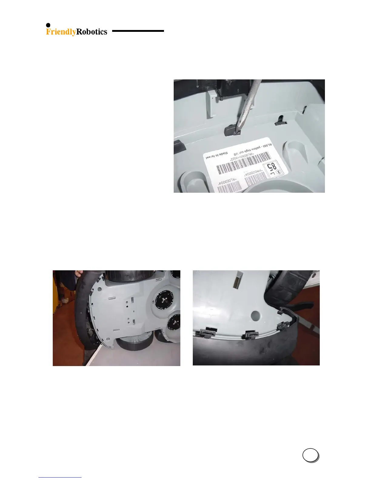 I. Support the Robomow on its side but be careful not to damage any of its exposed internal