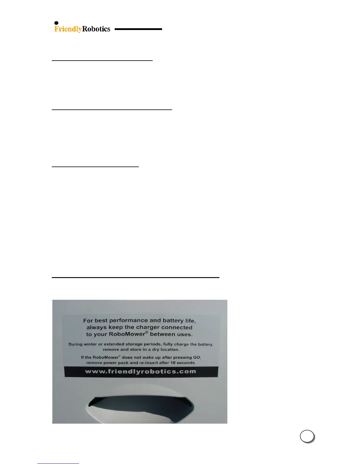 Note: The mower’s power pack has enough energy to complete all essential set up procedures