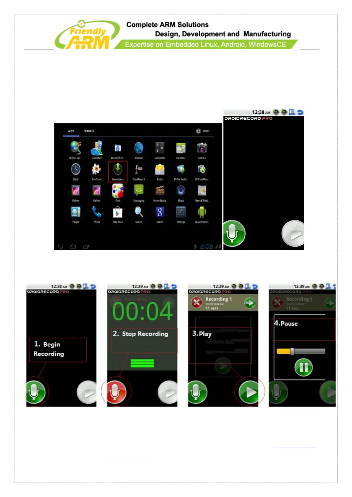 The DroidRecord utility can record and play audio. Double click on the icon to