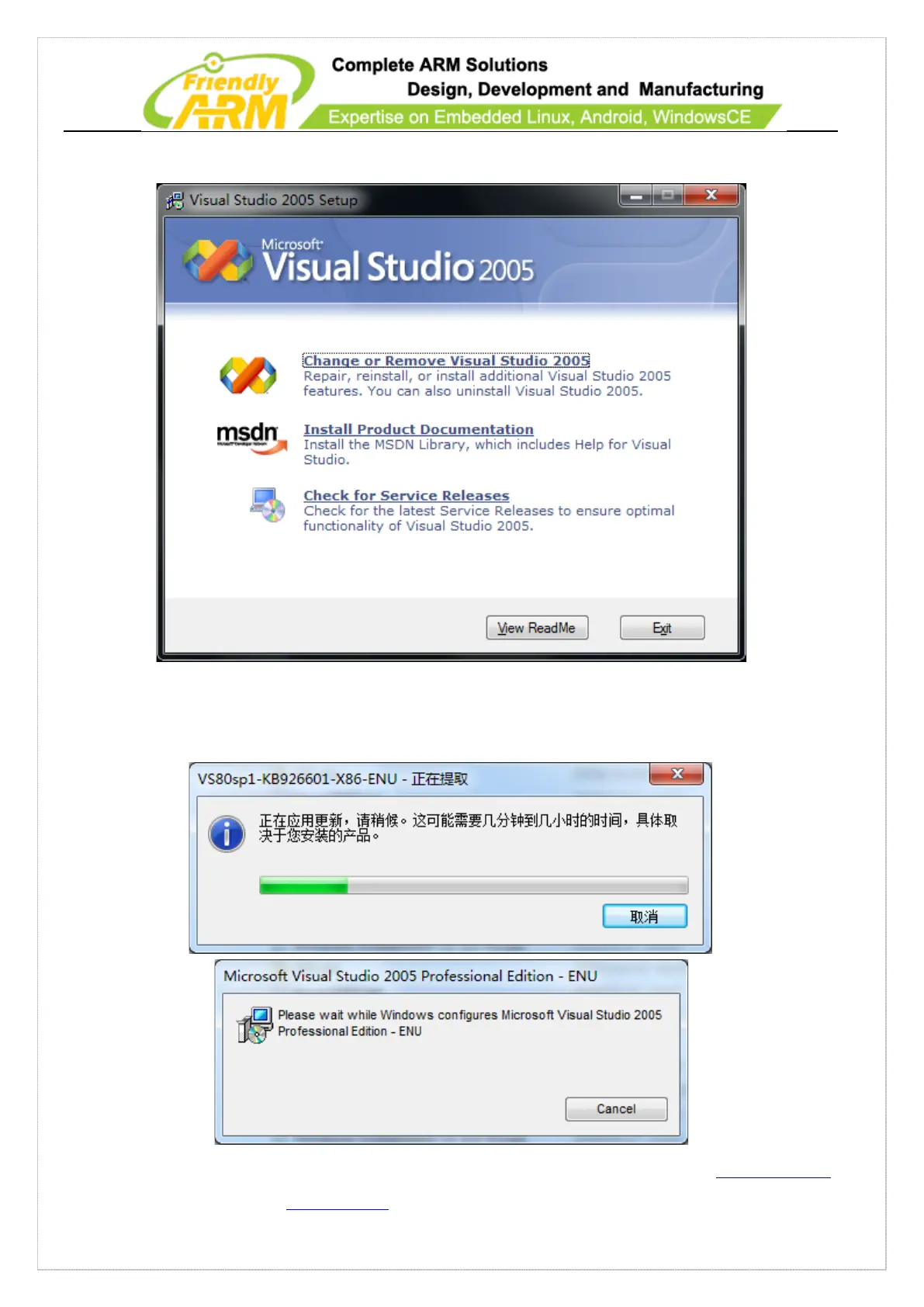 Step 8: Install Visual Studio 2005 Service Pack 1: double click on