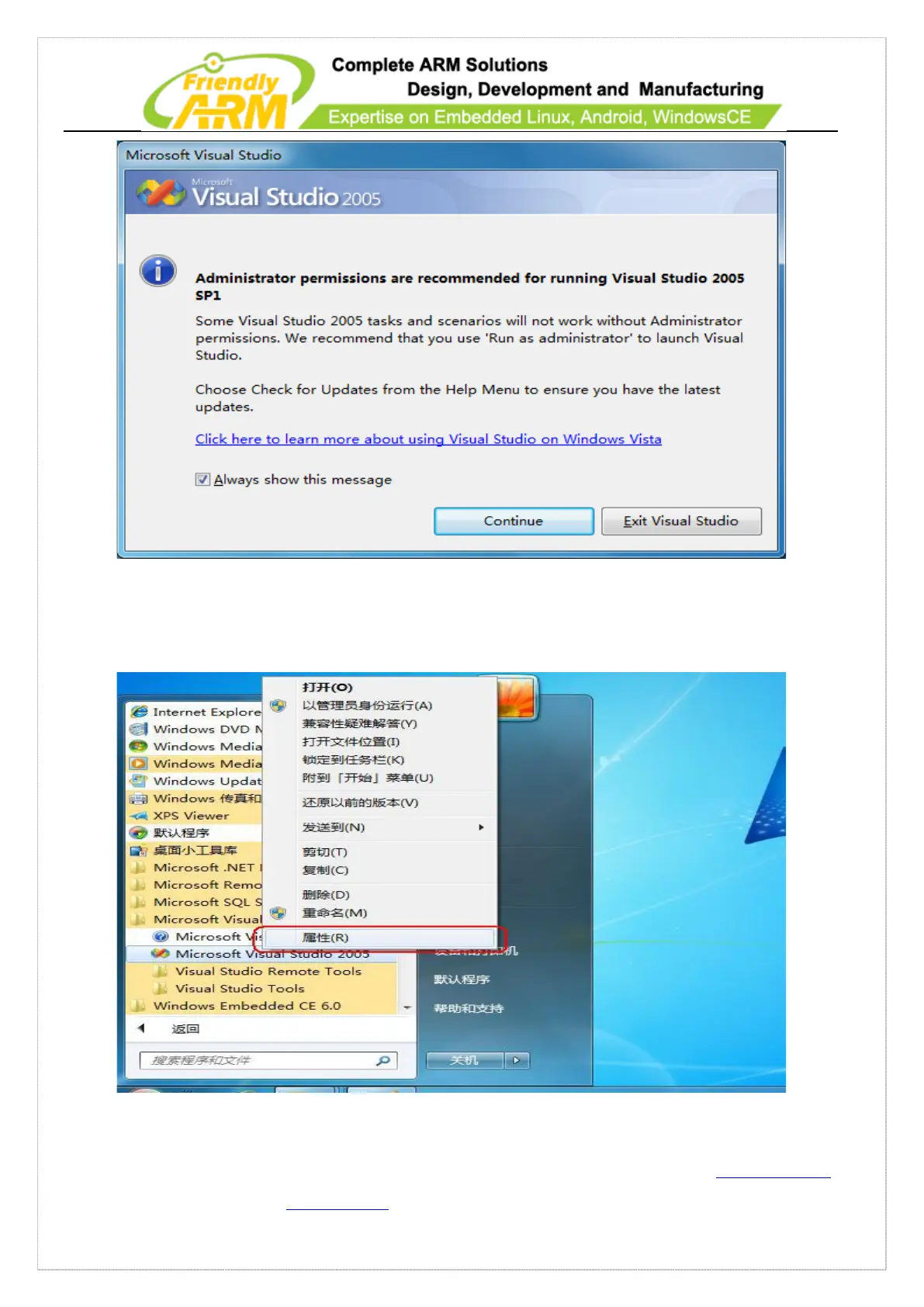 Step 3: Set up VS2005’s property. Go to “Start” -> “Programs” -> “VS2005” ->