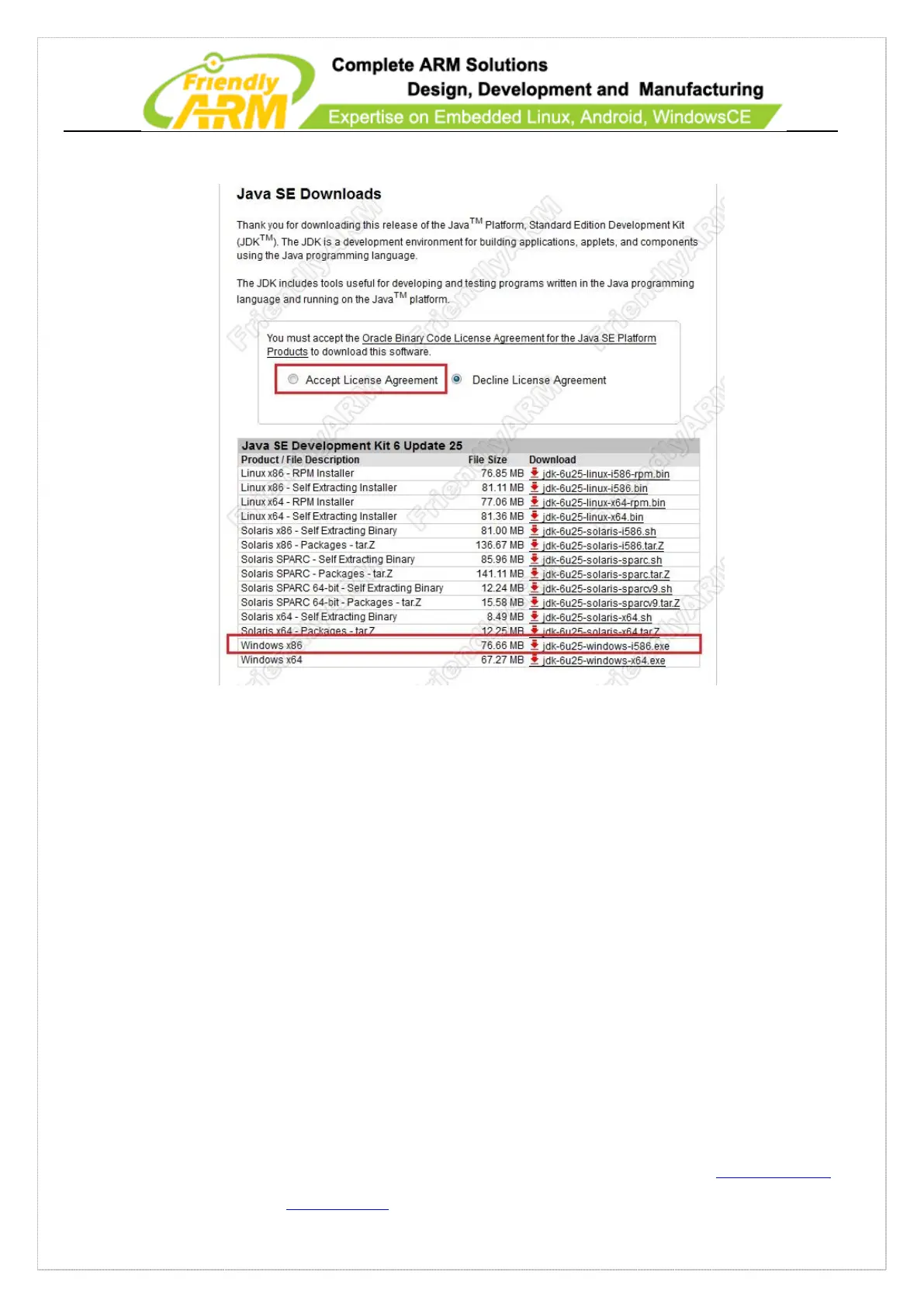 For Windows7 32bit systems you need to select jdk-6u25-windows-i586.exe to