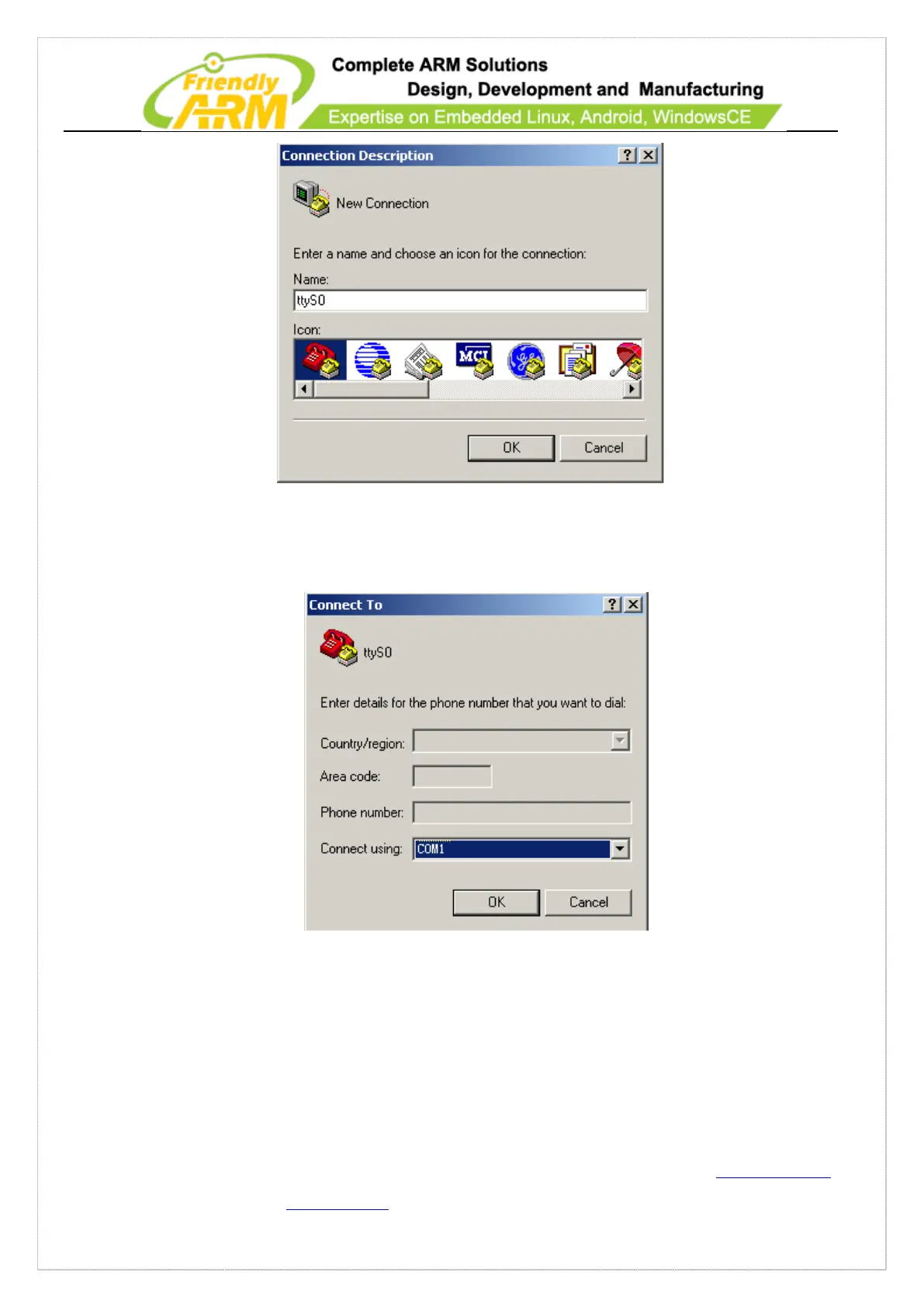 that will be used to connect the Tiny210 board. Here we selected COM1: