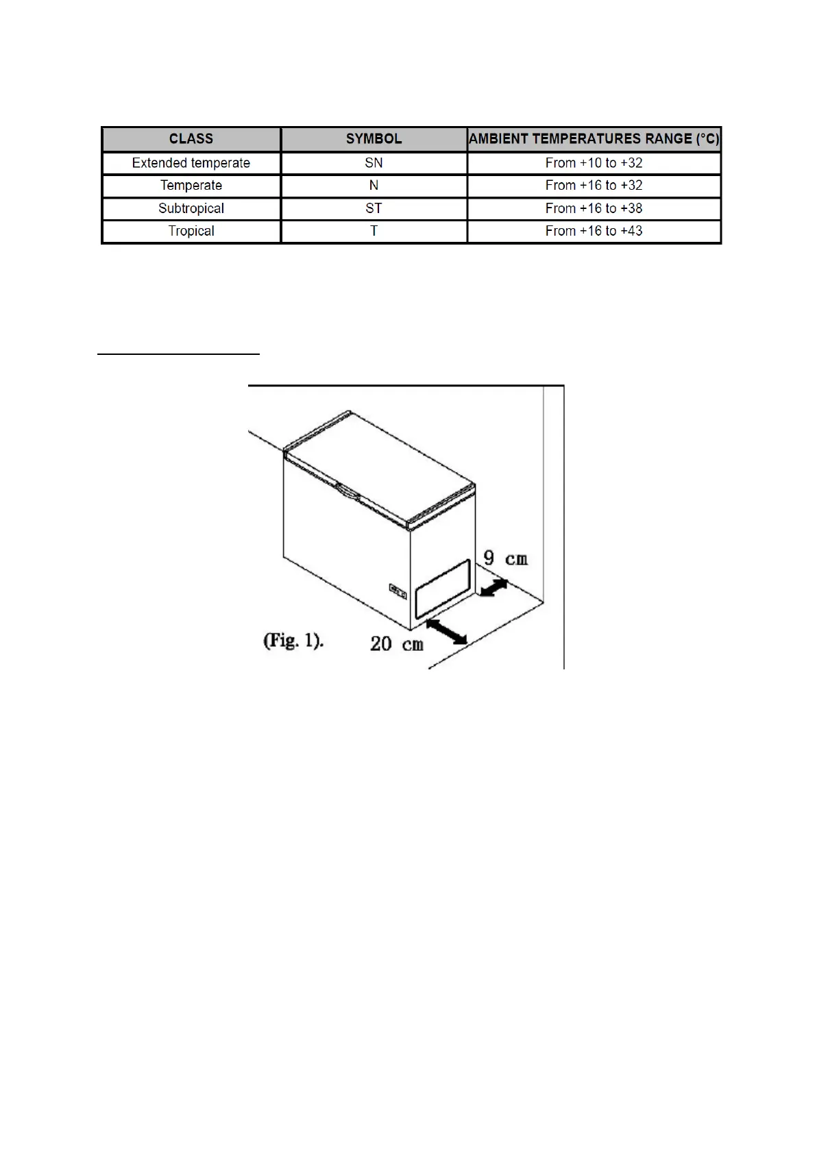 ▪ Allow 9 cm of space between the back and 20cm between sides of the freezer, which
