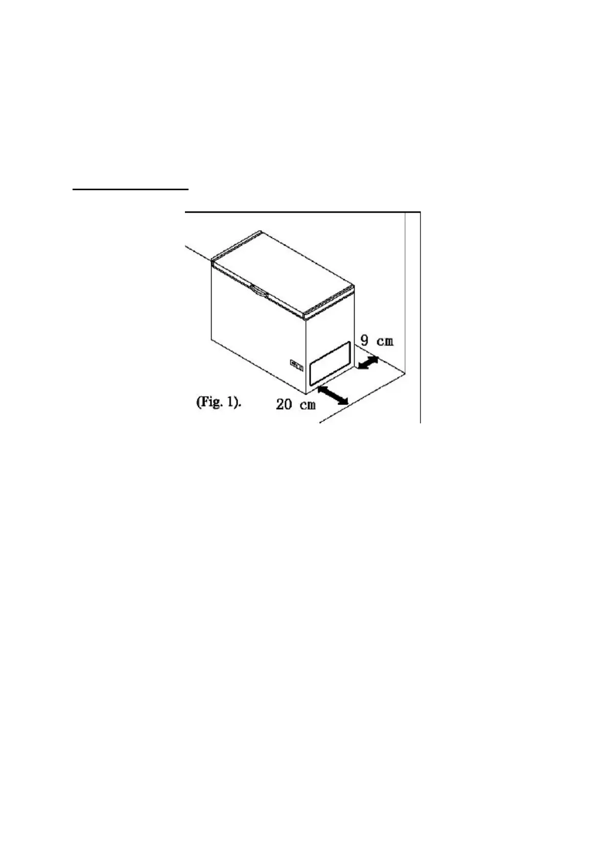 ▪ Deje 9 cm entre la parte trasera del congelador y la pared y 20 cm de espacio entre el