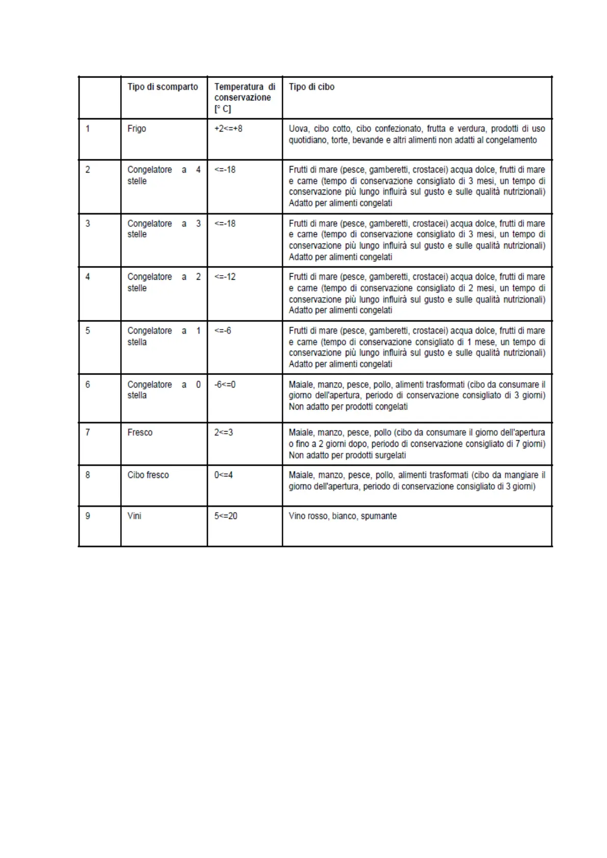 Nota: il congelamento non sterilizza. È quindi importante preparare gli alimenti per il