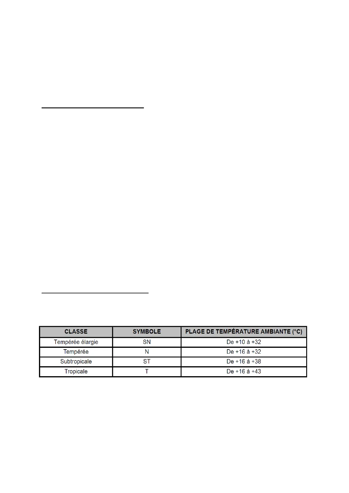 est à respecter. Cette température est spécifique selon la classe climatique de l’appareil.