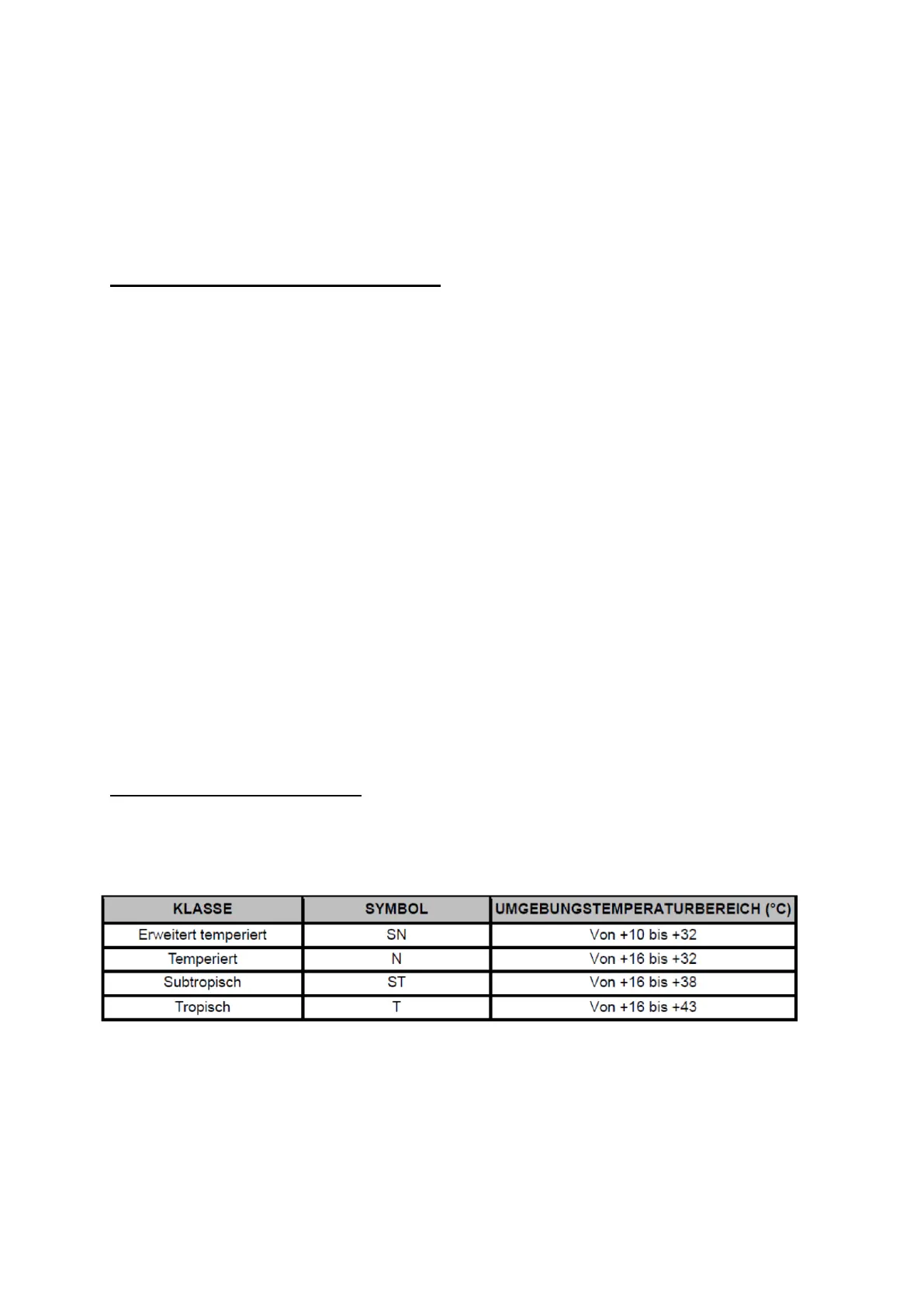 Temperatur ist abhängig von der Klimaklasse des Gerätes.