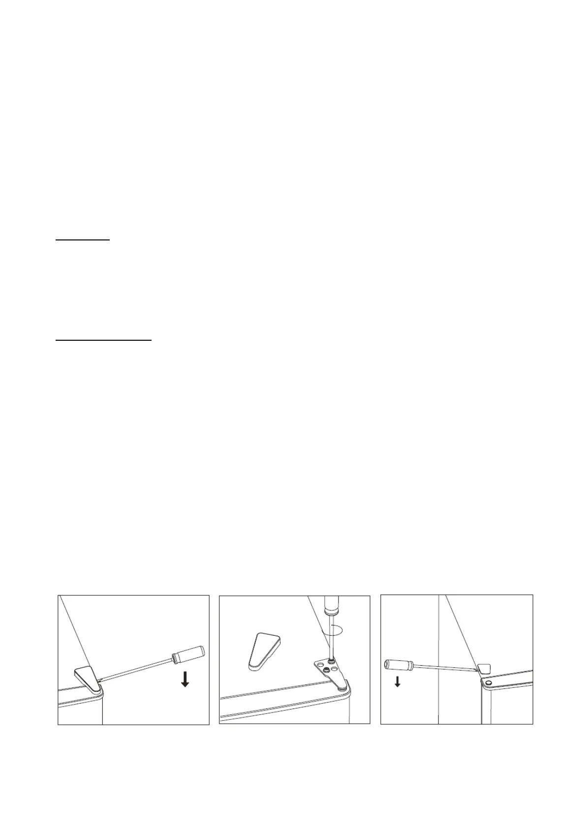 5. Dévissez la charnière inférieure. Retirez ensuite les pieds réglables des deux côtés.