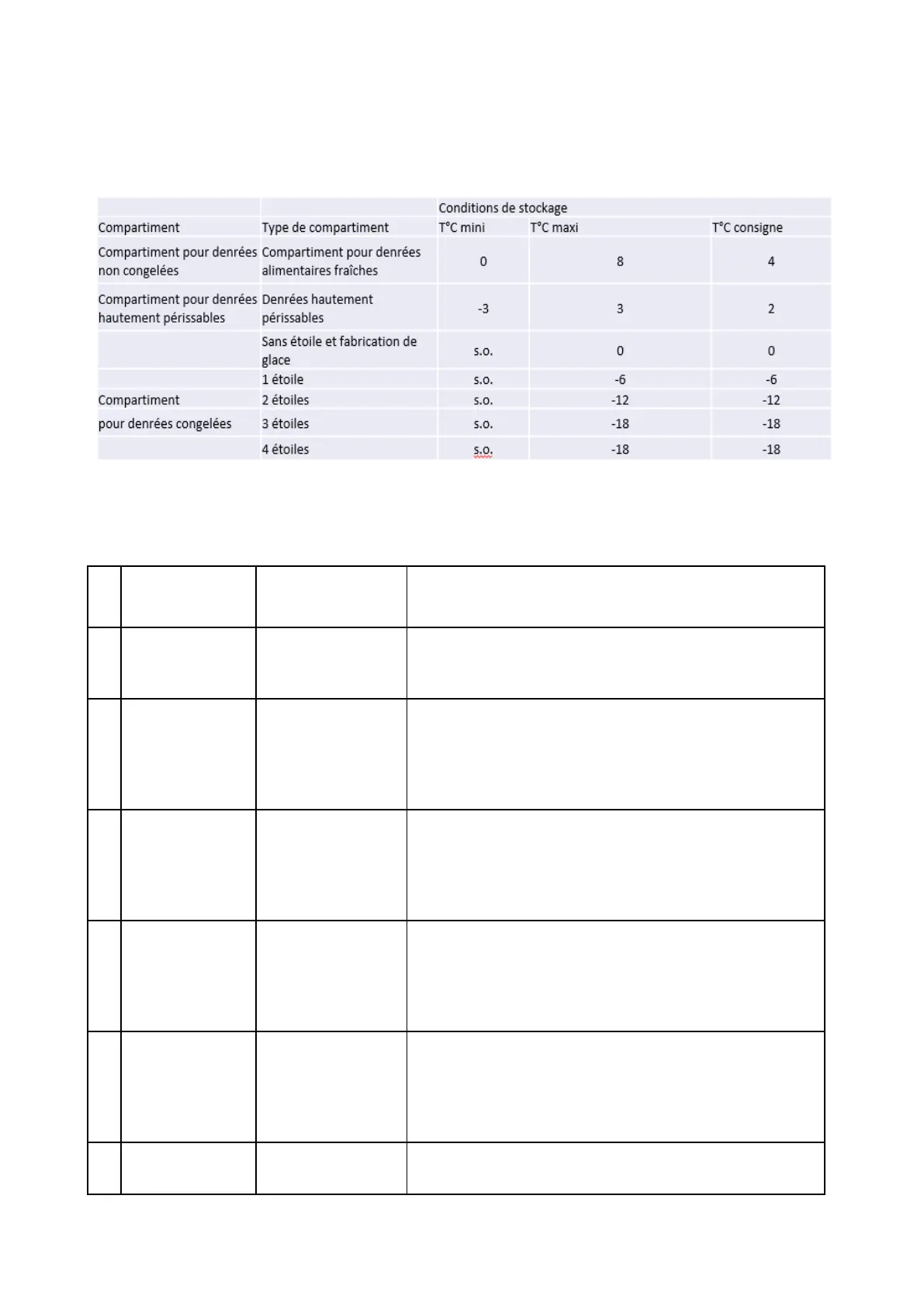 recommandé de régler les températures des compartiments comme ci-dessous :