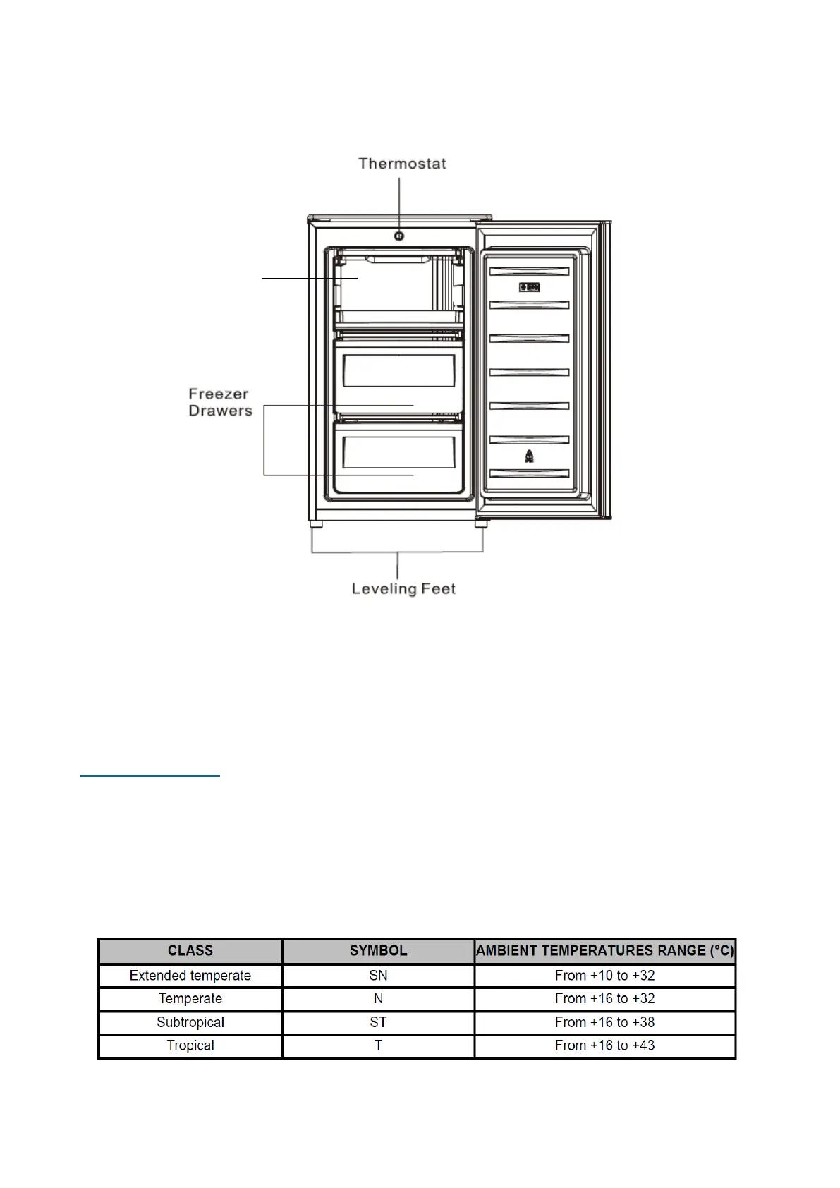 specific according to the climatic class of the device: