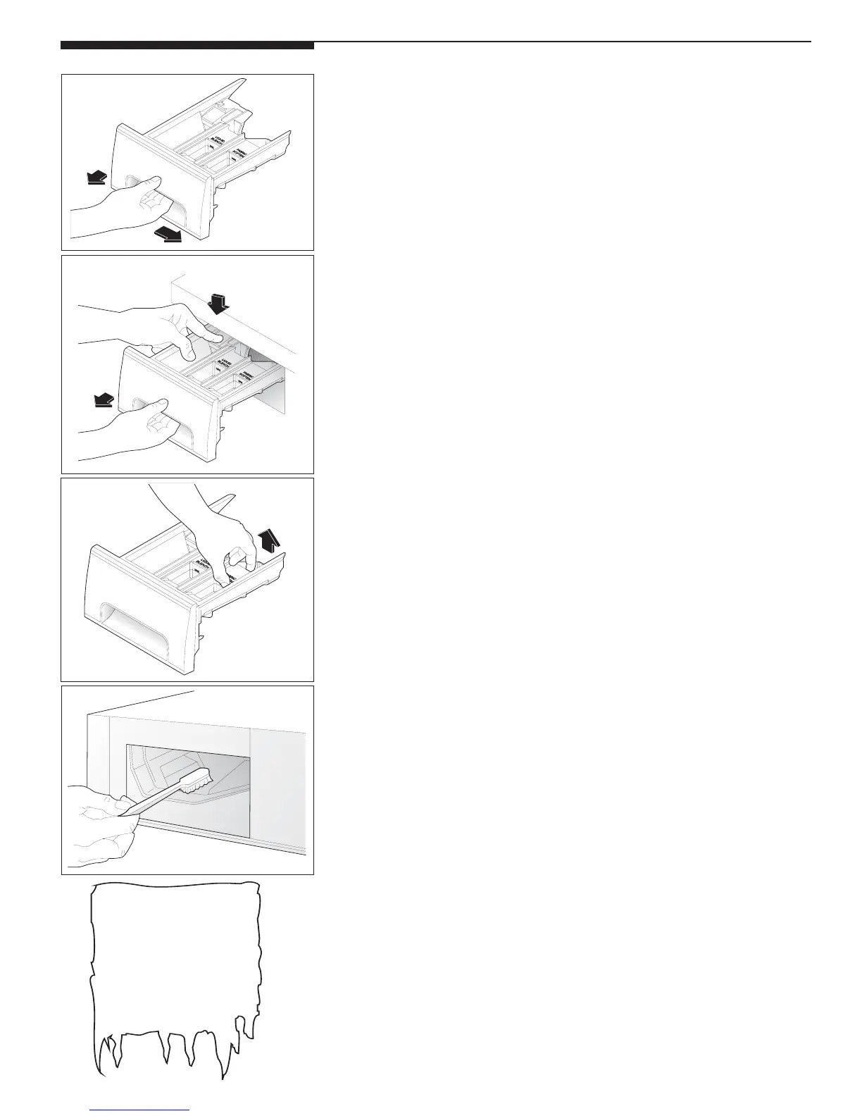 • To clean the drawer opening, use a small brush to clean the recess. Remove