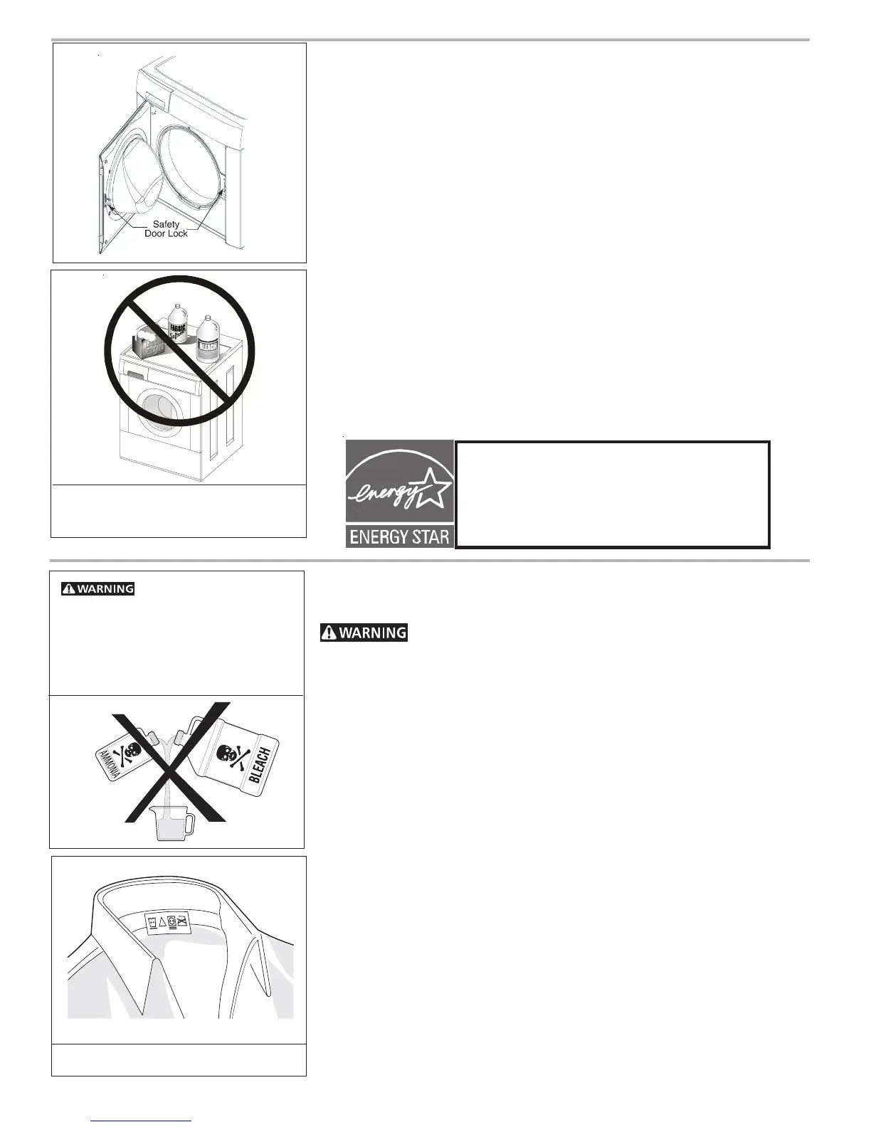 • Do not place detergent, bleach or fabric softener containers on top of the