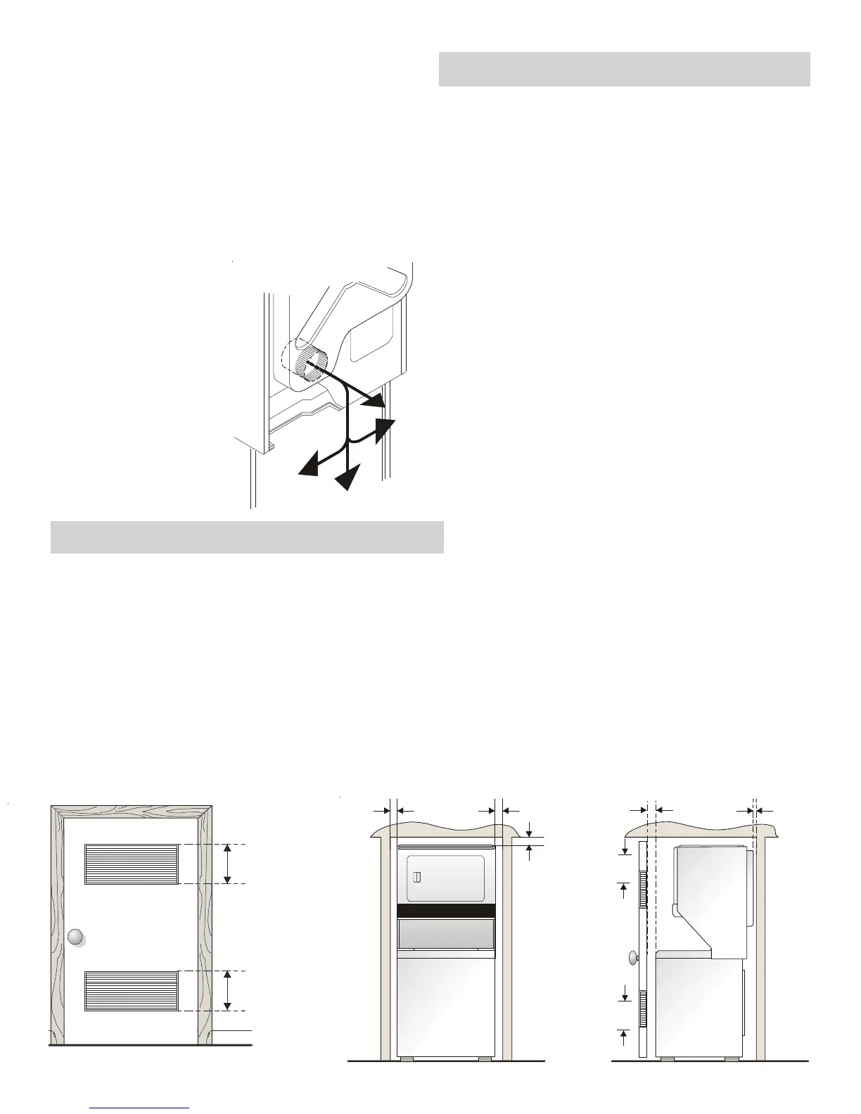 5.The following illustrations show minimum clearance dimensions and air openings for proper operation in a recess or closet