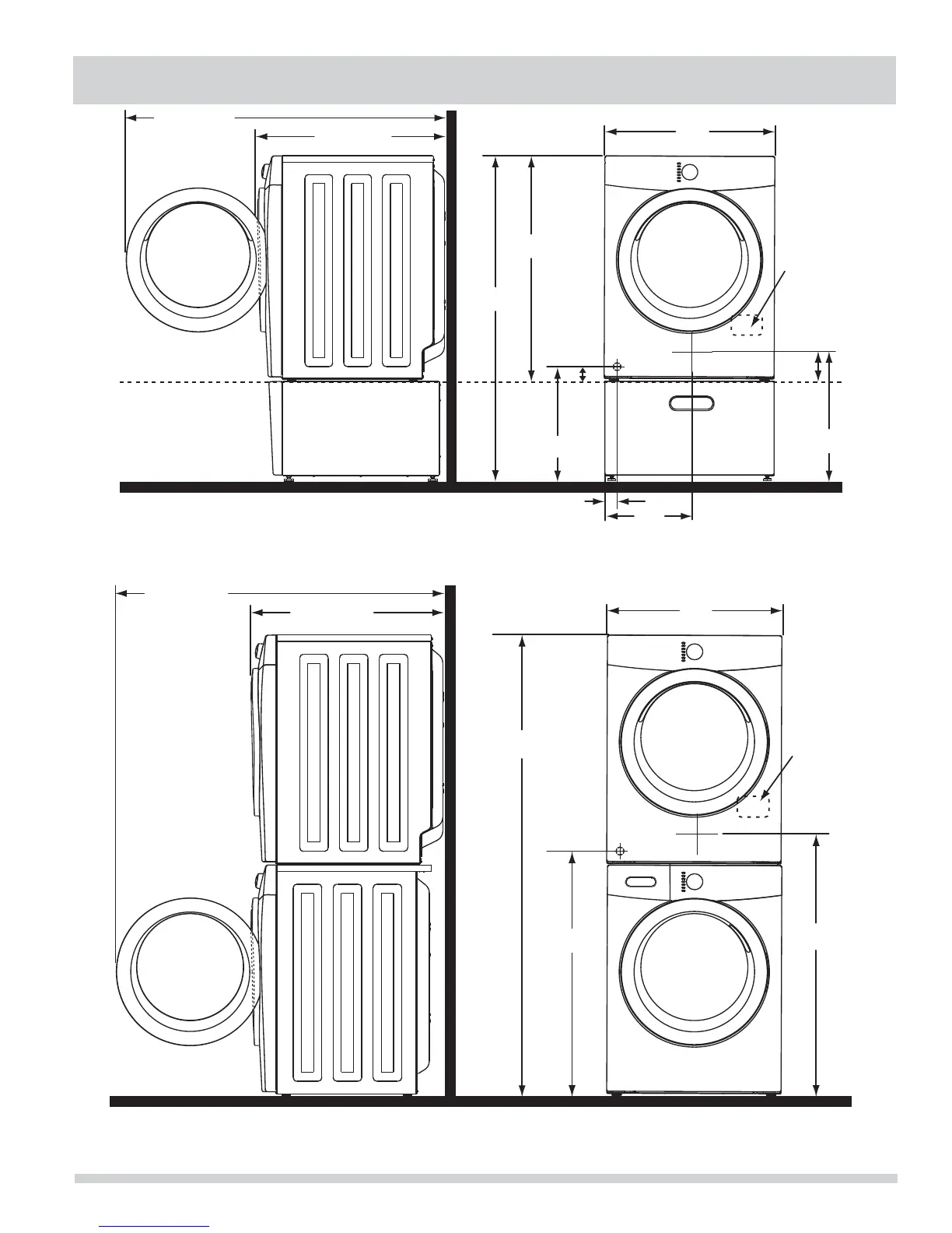 en la secadora independiente), se agregan aproximadamente 0.75" (2 cm) a la profundidad