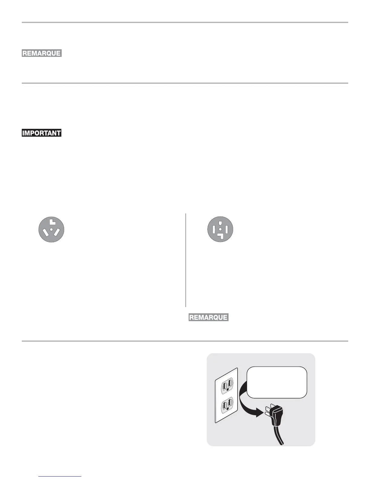 PRISE - Prise NEMA 10-30R ou NEMA 14-30R située de manière à permettre l’accès au cordon d’alimentation lorsque la