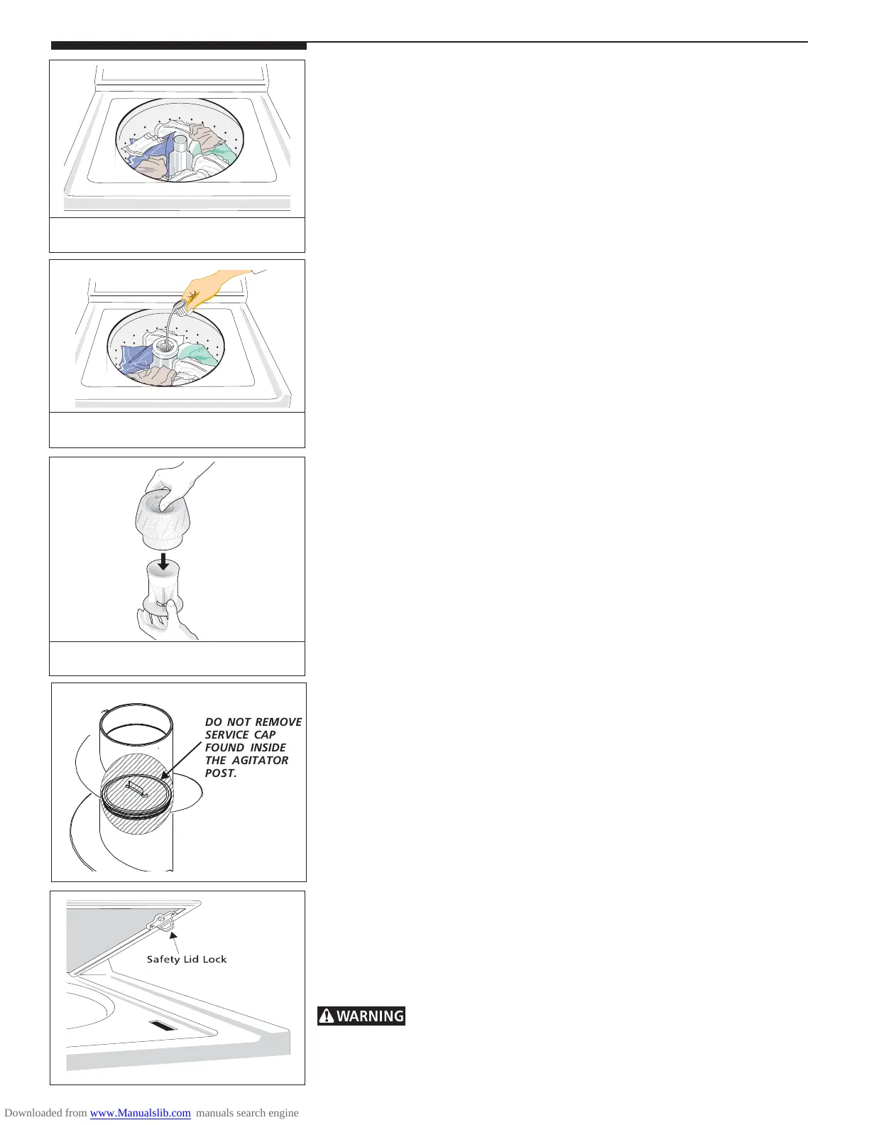 DO NOT REMOVE SERVICE CAP FOUND INSIDE THE AGITATOR