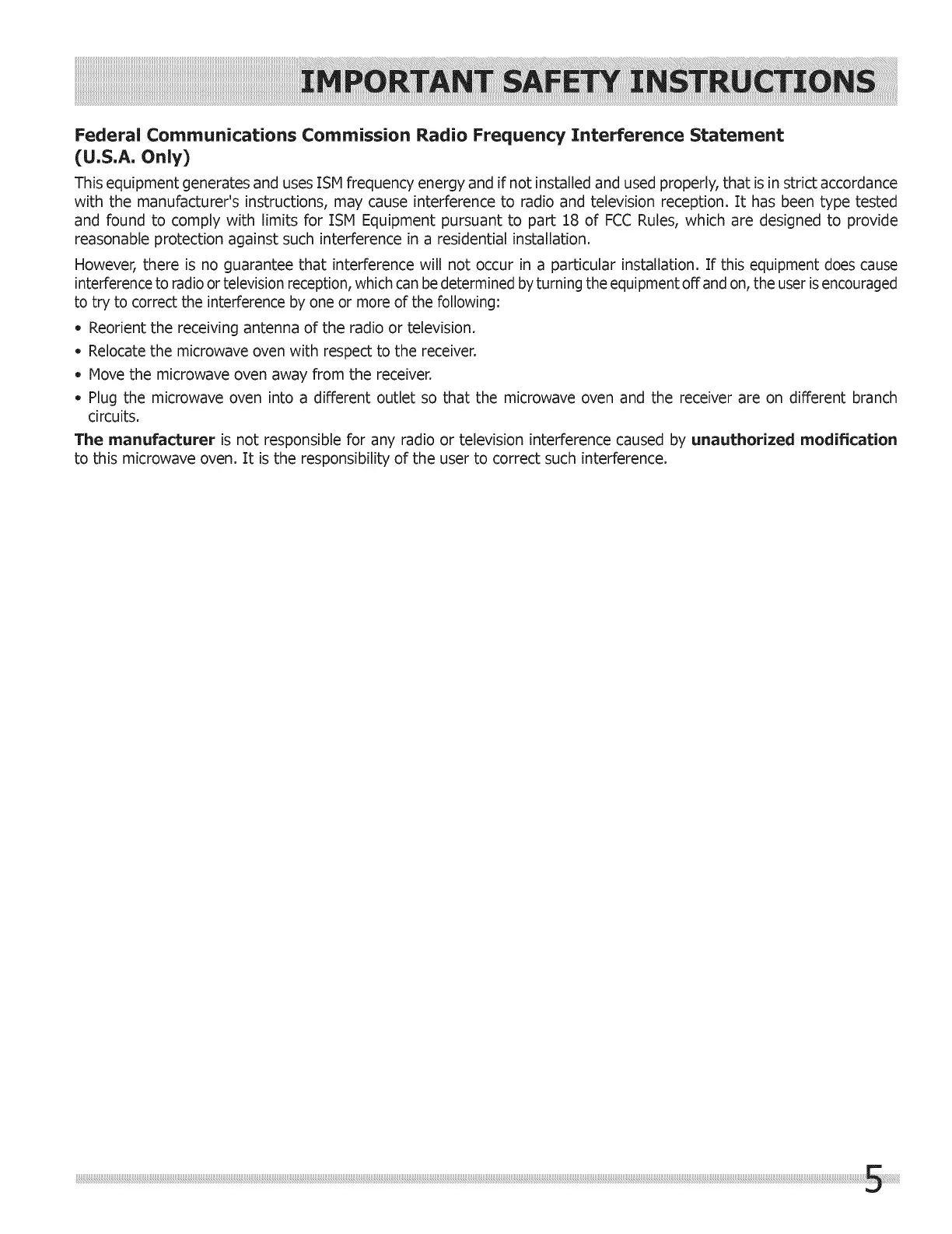 to this microwave oven. It is the responsibility of the user to correct such interference.
