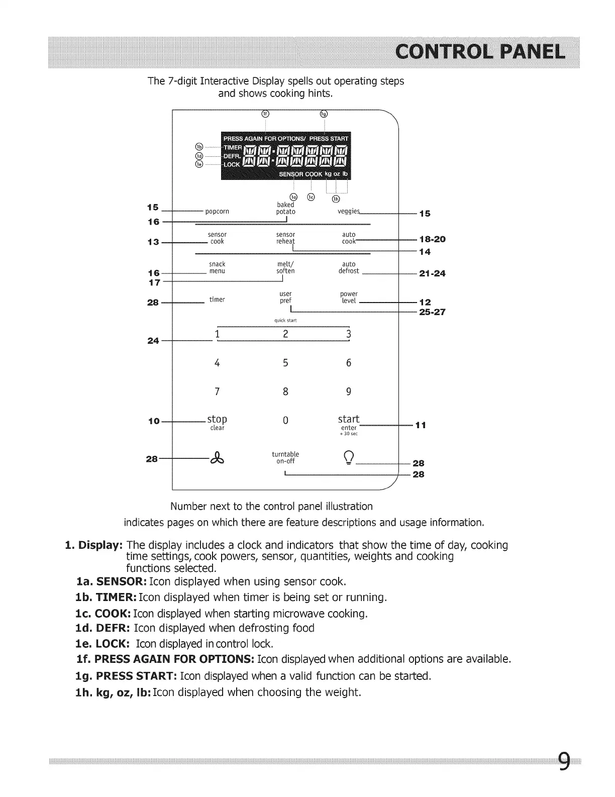 Number next to the control panel illustration