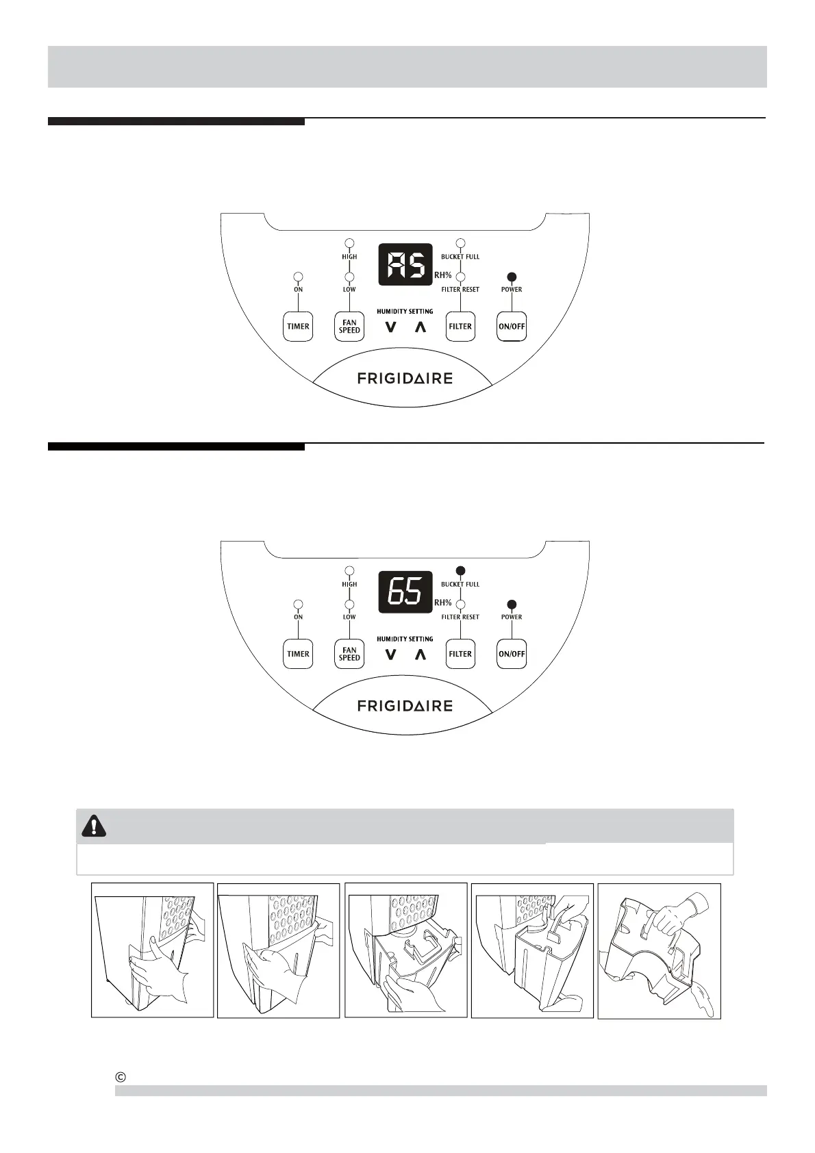 e. Replace the empty bucket back into the unit and once seated correctly the unit will start up again.