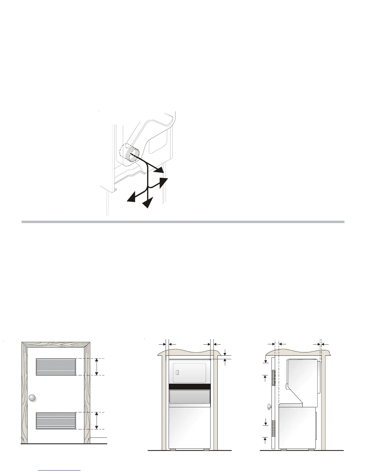 5.The following illustrations show minimum clearance dimensions and air openings for proper operation in a recess or closet