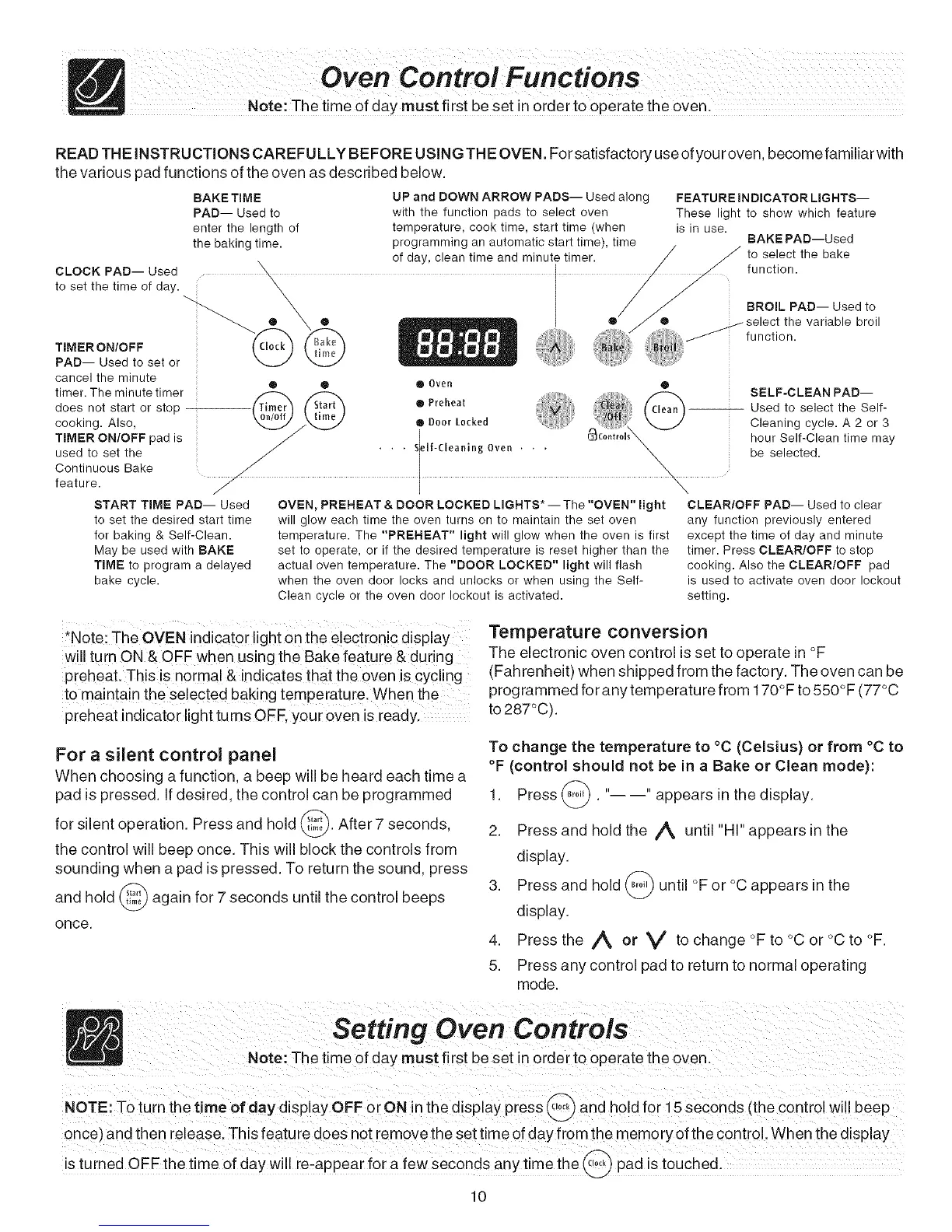I Note: The time Ofday must first be Set in ordert0 operate the oven: