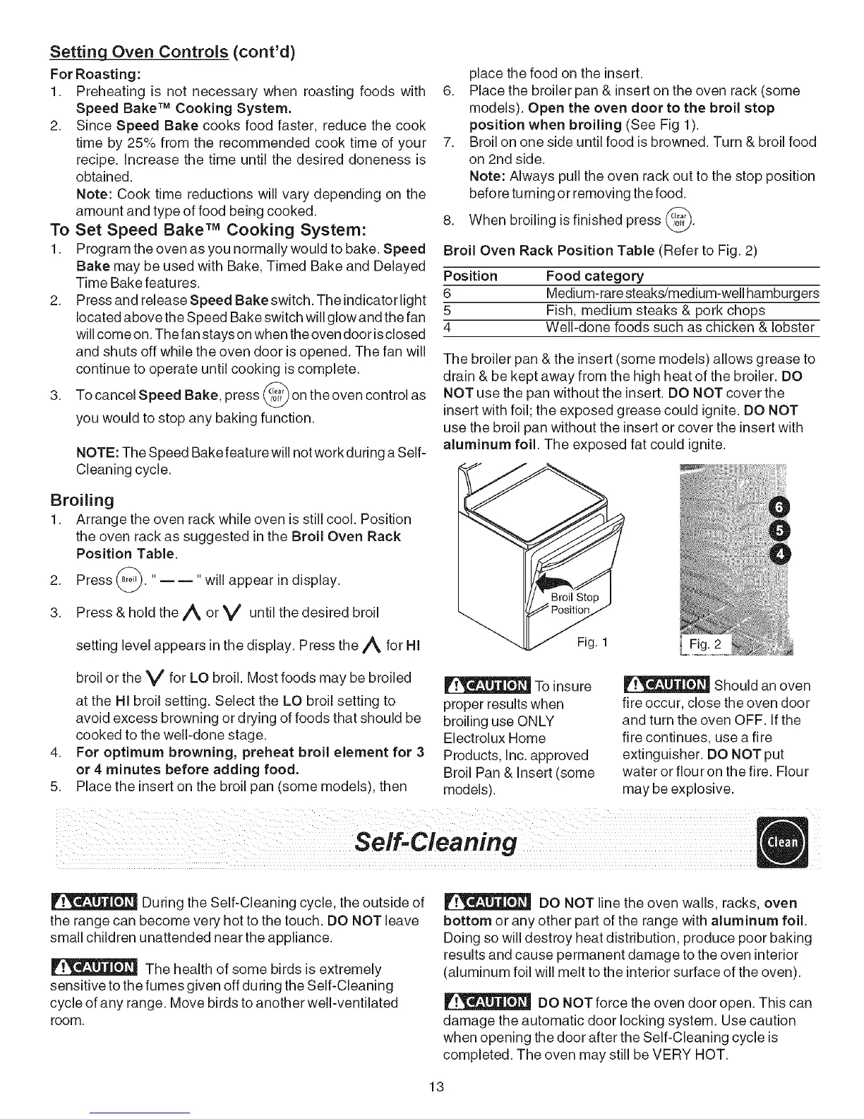 Broil Oven Rack Position Table (Refer to Fig. 2)