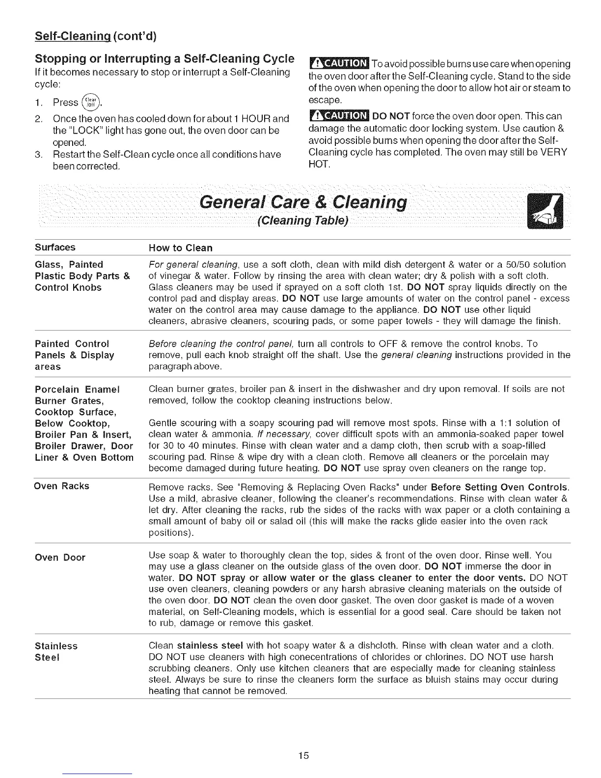 If it becomes necessary to stop or interrupt a Self-Cleaning