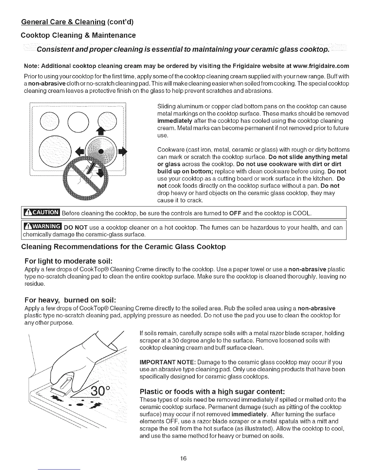 Note: Additional cooktop cleaning cream may be ordered by visiting the Frigidaire website at www.frigidaire.com
