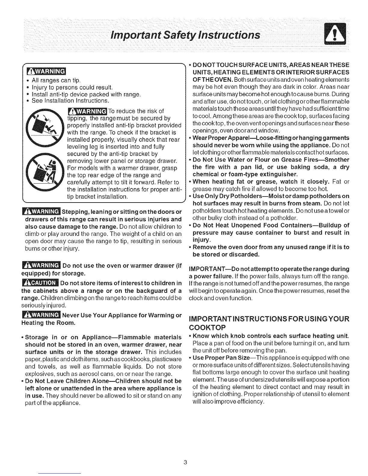 IMPORTANT--Do not attempt to operate the range during