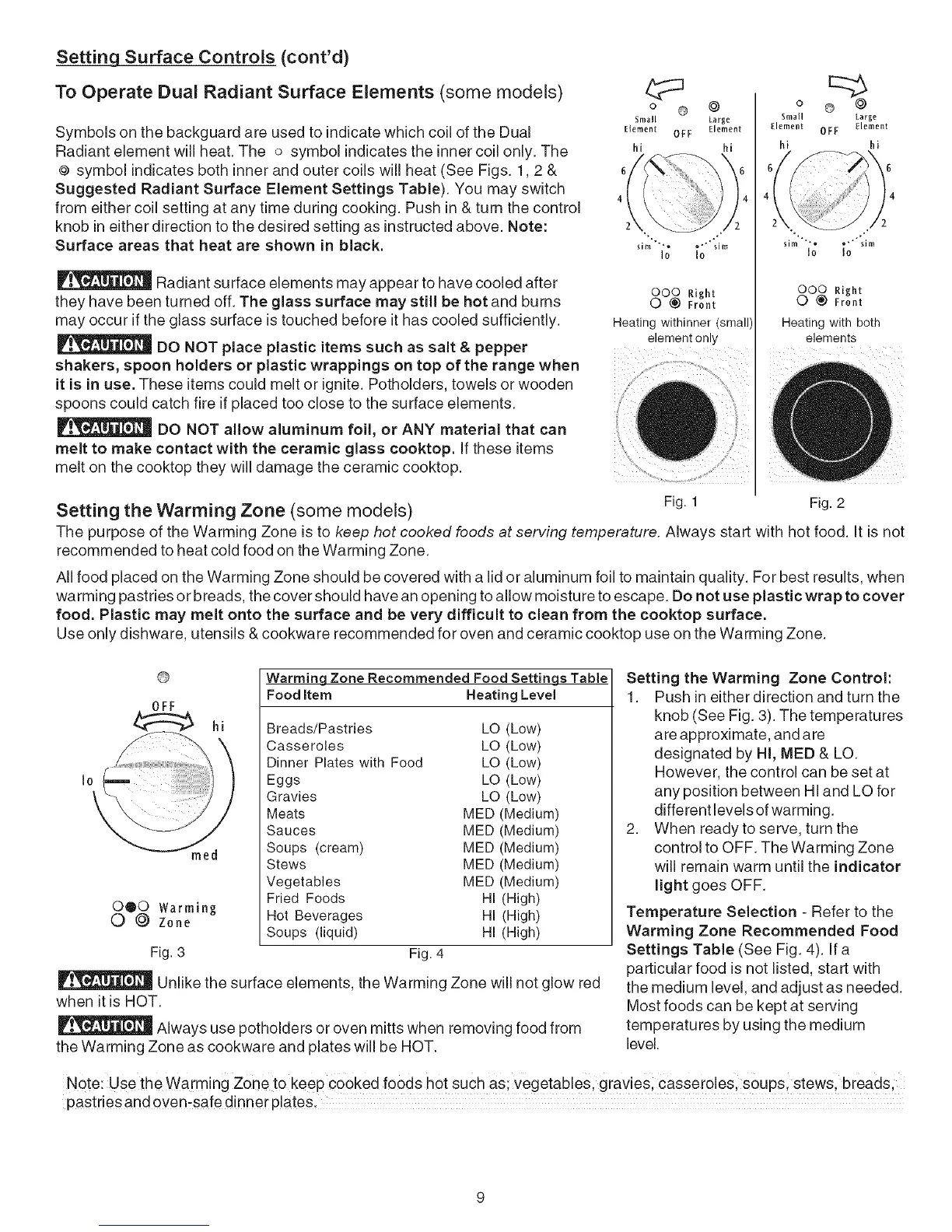 Setting the Warming Zone (some models) Fig.1 Fig.2