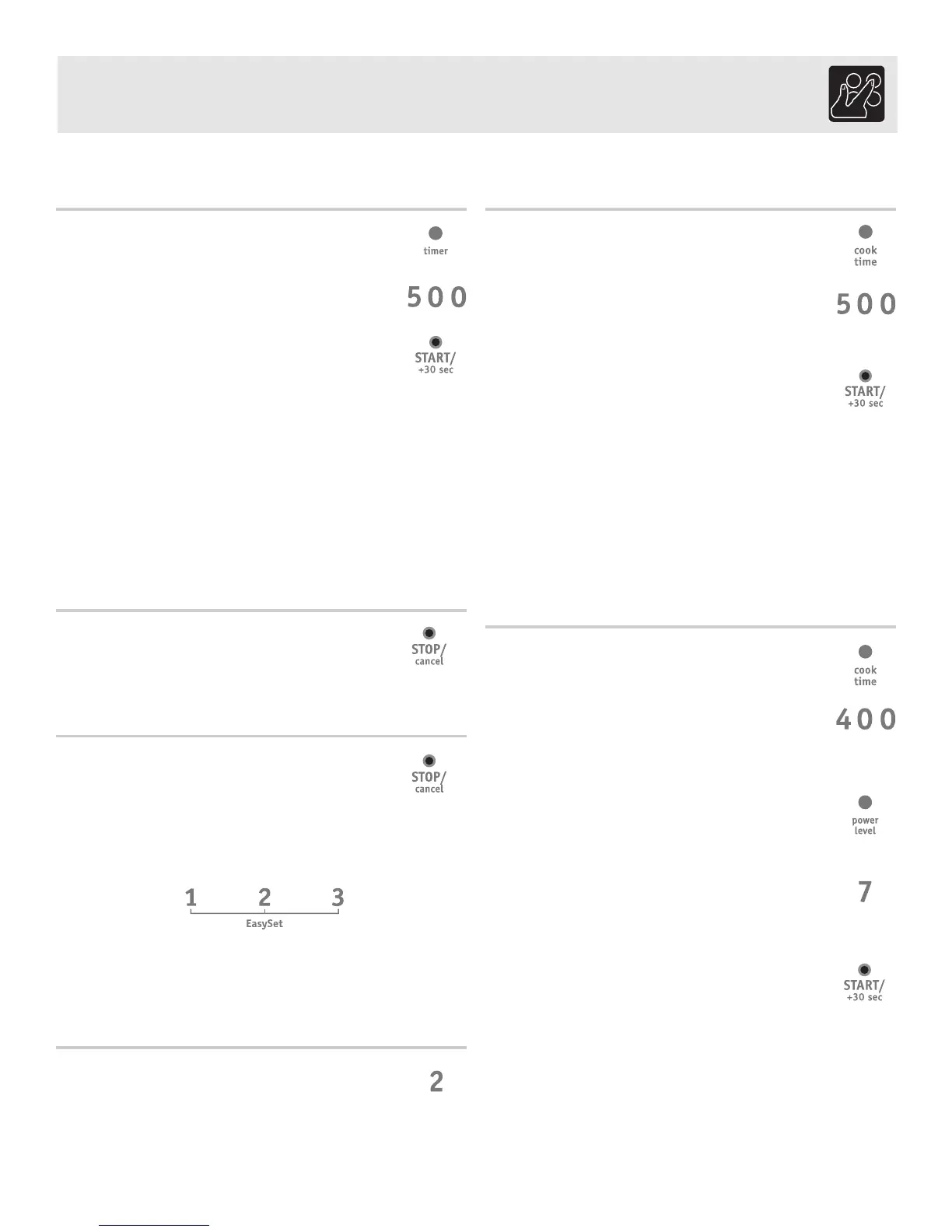 power level for 1, 2 or 3 minutes. Use the number keys 1, 2