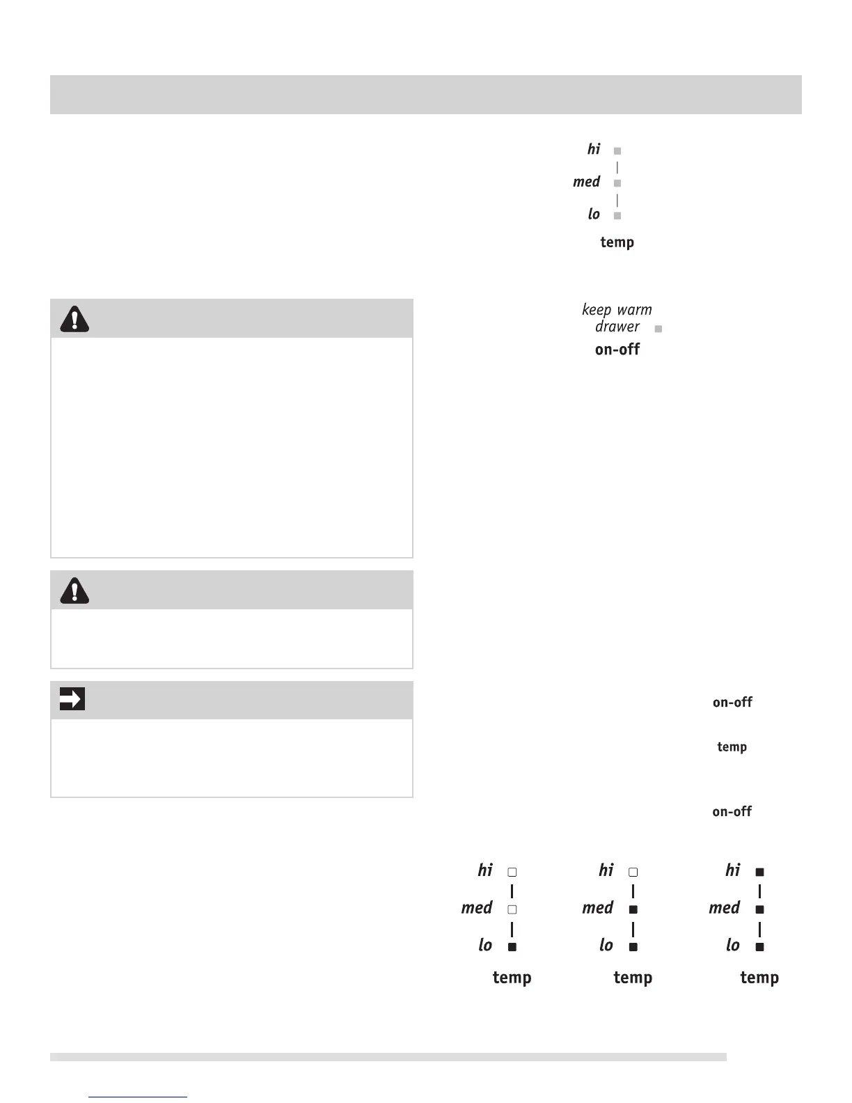 the keep warm drawer. Available temperature settings (2)