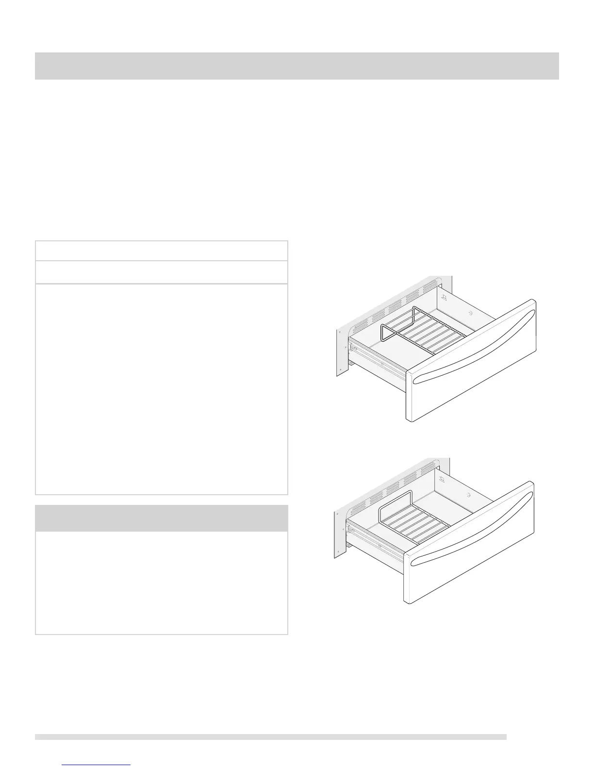 Set the keep warm drawer rack in either position as shown
